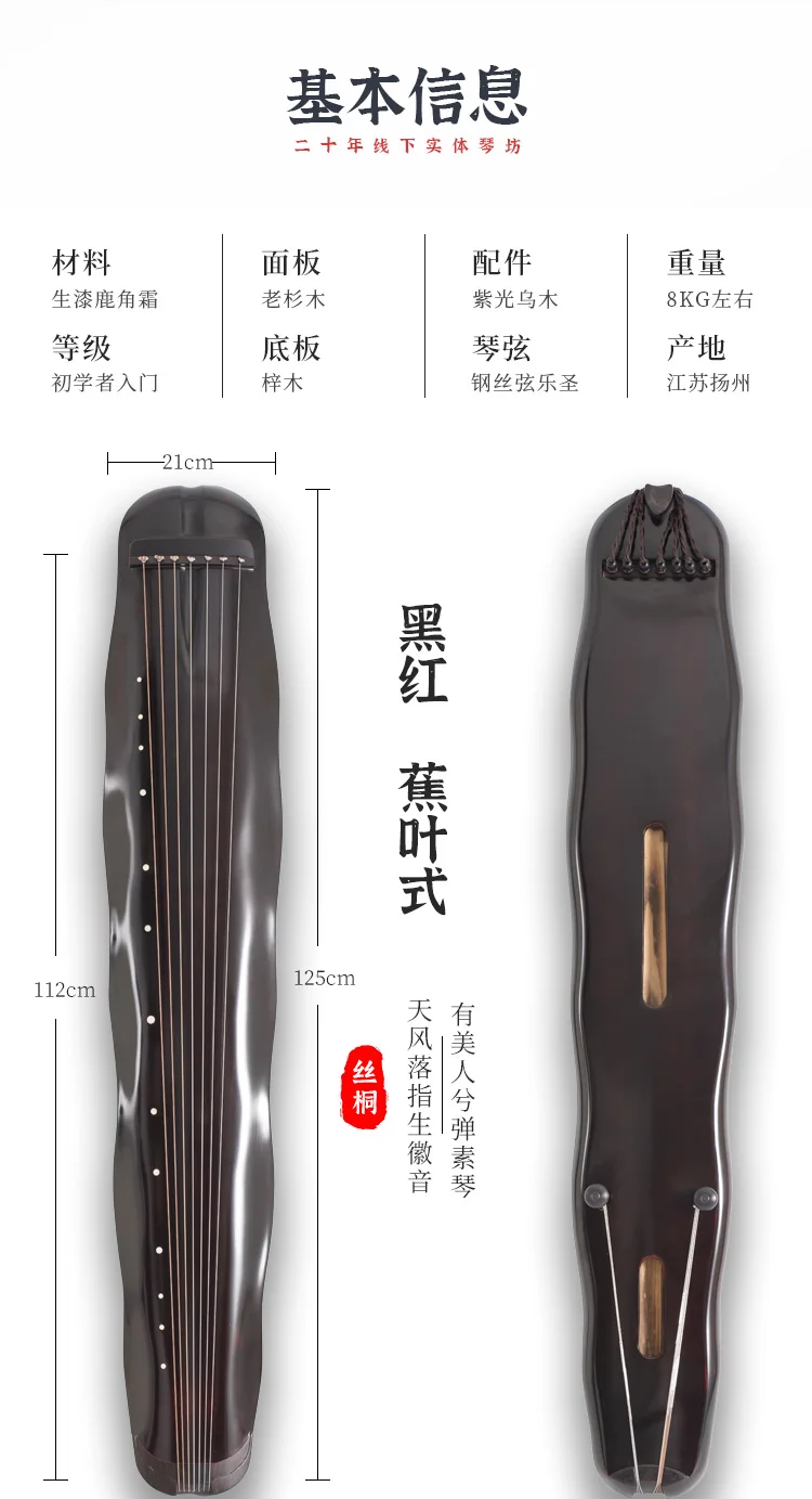 Guqin performance-grade pure handmade Fuxi-style banana leaf style guqin old cedar lacquer Chinese zither string instrument