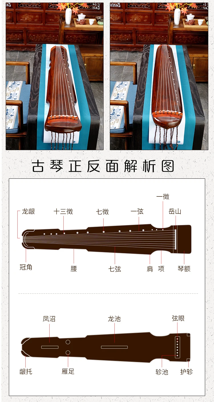 Guqin zither Portable Practice Handmade Fuxi Chaotic lyre