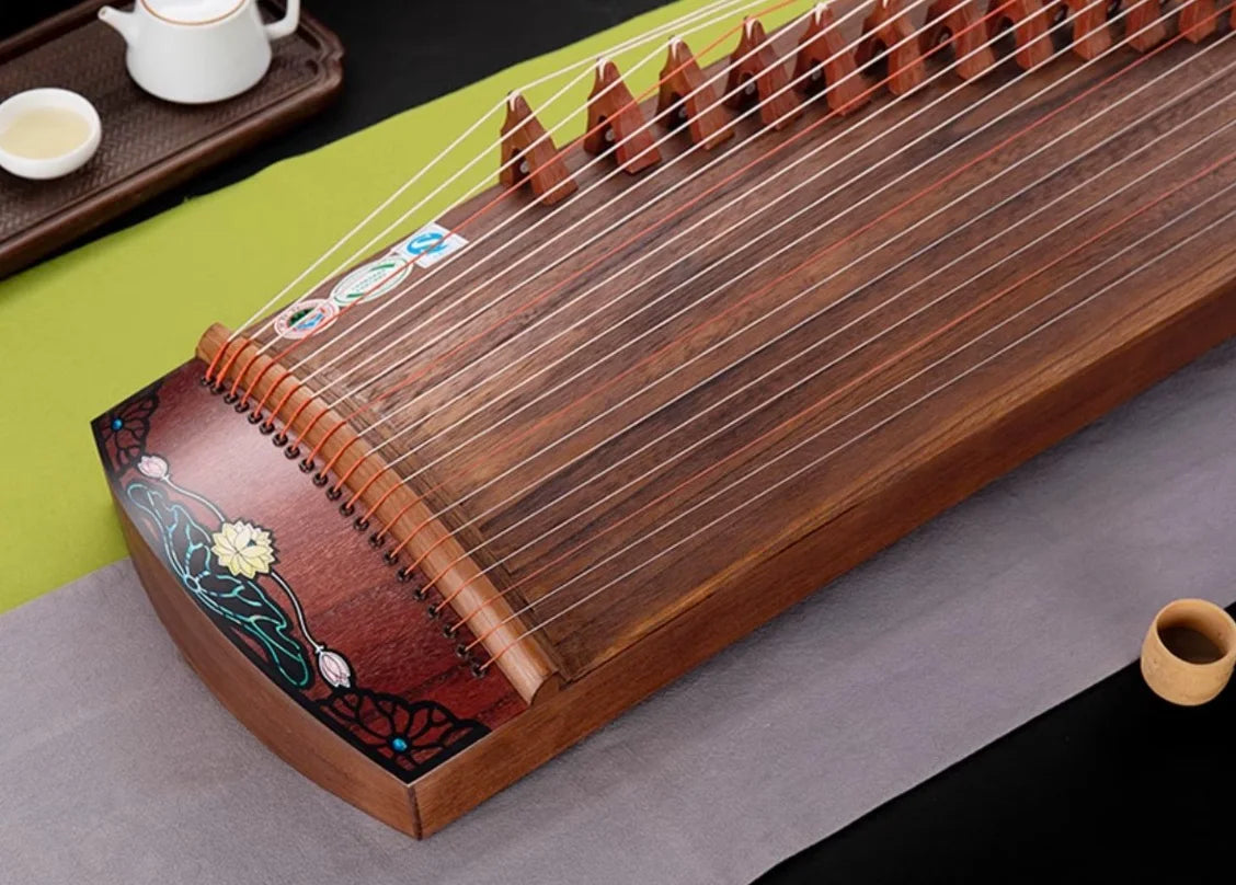 Guzheng 125cm lotus figure 21 strings Golden sandalwood material China stringed instruments