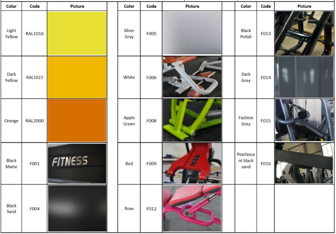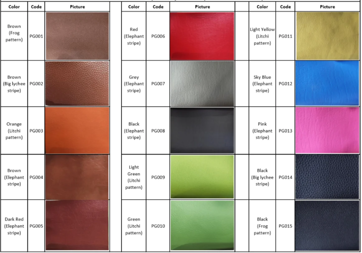 Selection table of cushion color and paint color