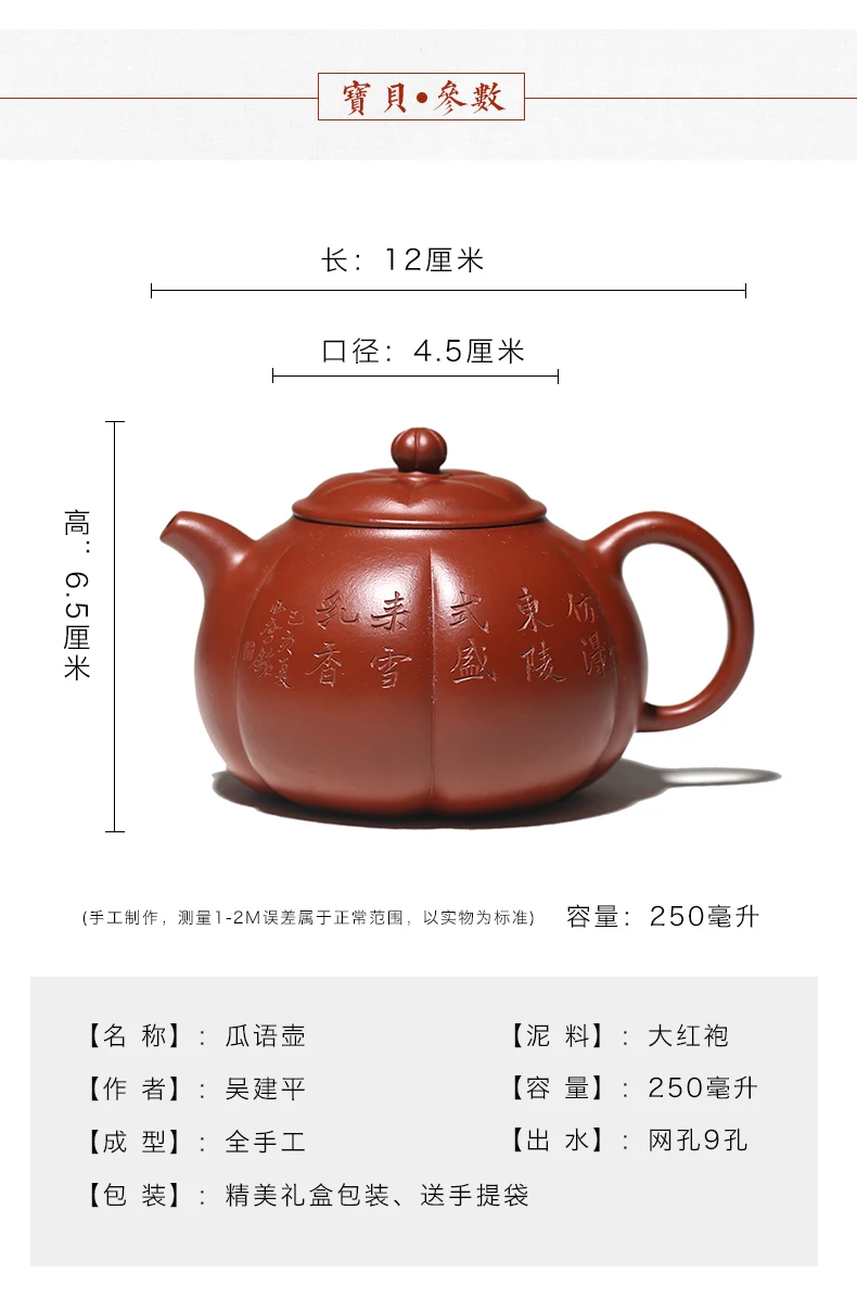 Hall of yixing monohydrate undressed ore pure manual recommended zhu mud pumpkin pot of melon 250 cc of antiquity