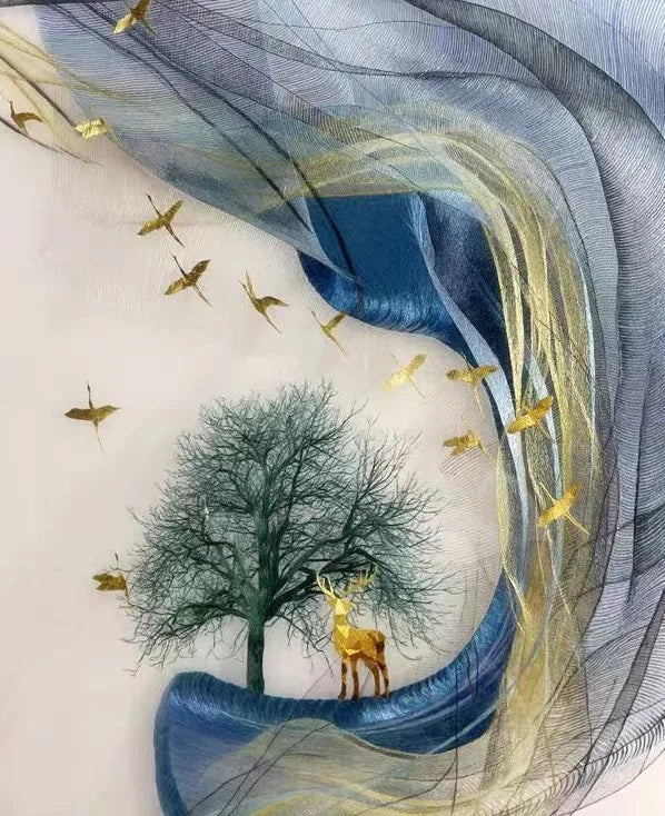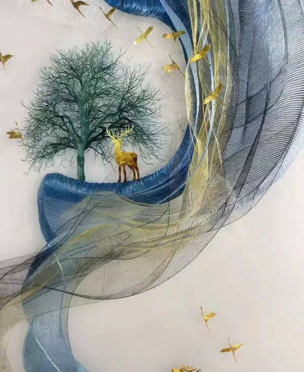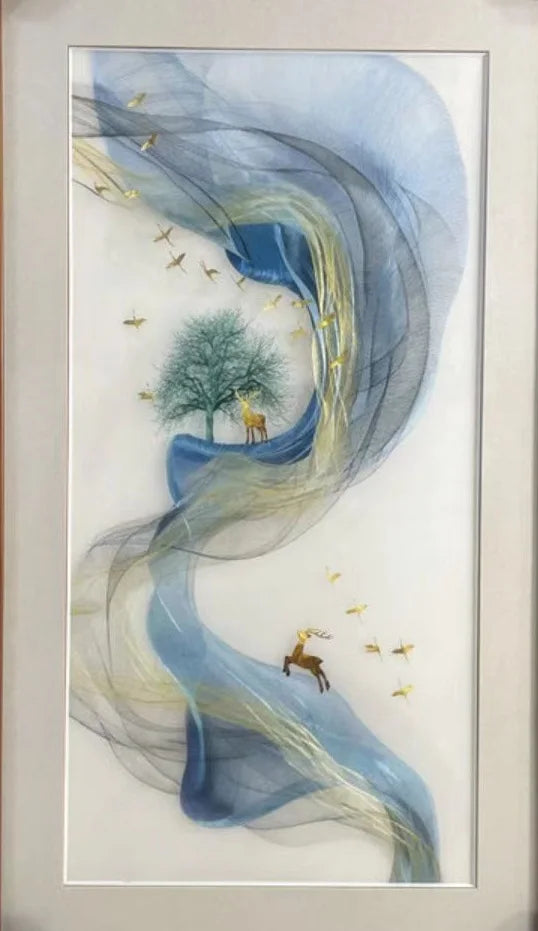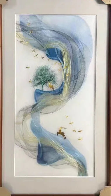 Handmade 100% Mulberry Silk Thread Finished Suzhou Embroidery not include frame ,Landscape Recruiting wealth 50*100cm
