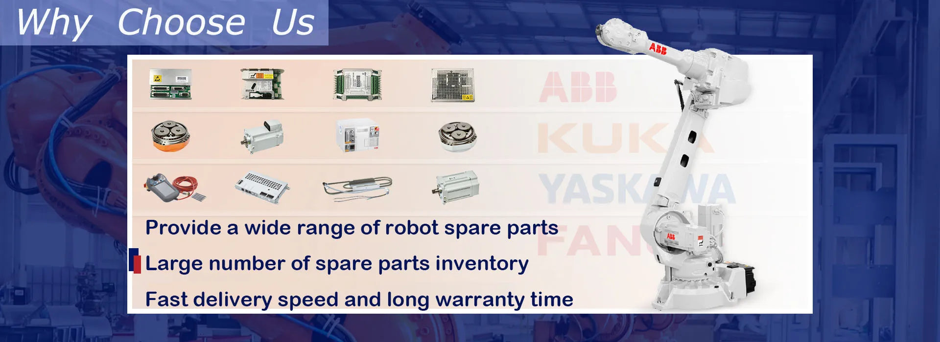 Q1: Could Dazhi provide Technology Support? A1: We have 8 years of experience in after-sales service of industrial robots. If there's any problem, please contact us,we'll provide suggestion from our engineer and the Manufacturer to help you solve the problem. Q2: What warranty does Dazhi Provide ? A2: All goods are new and original with 365 days guarantee. All parts we sell have 30 days return policy from the day of shipment, but if Damage we are unable to replace it. Q3: What shipment Service Dazhi Provide? A3: We use DHL,FEDEX,TNT,UPS,EMS to delivery goods less than 30Kg. By air or by sea will be use for bulk order.The most economic shipping way will be given to you!