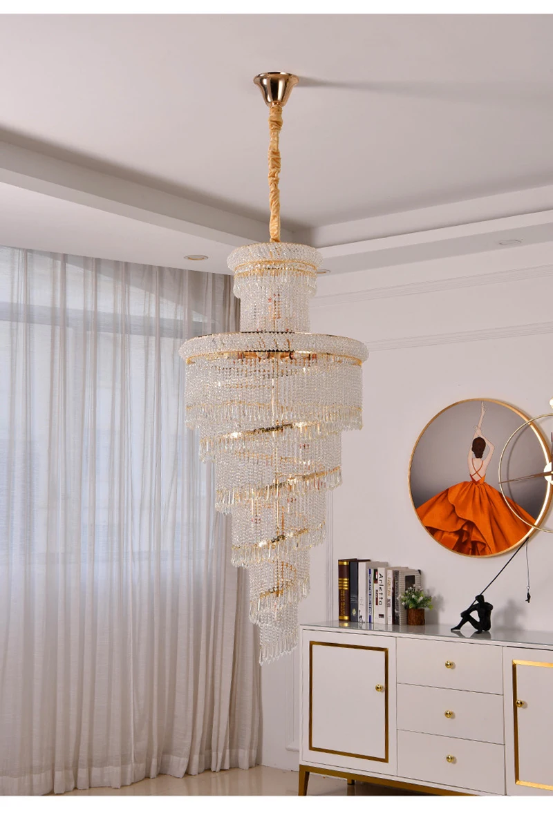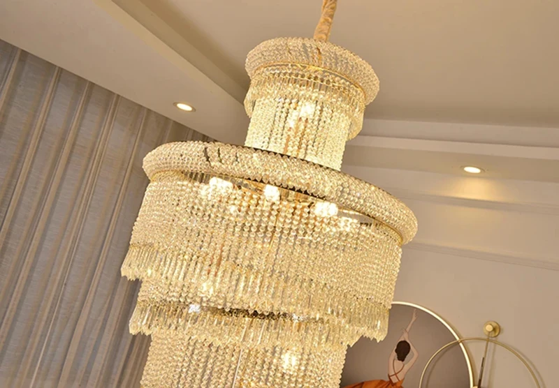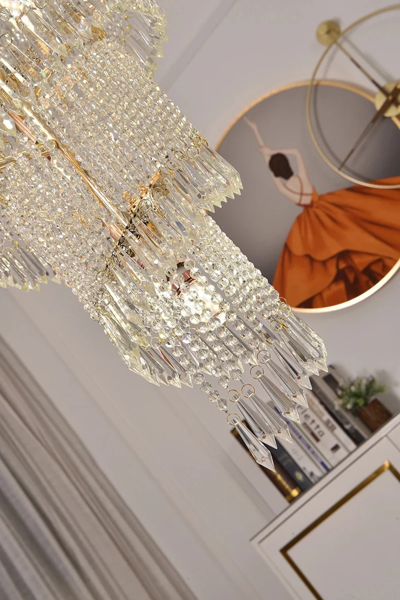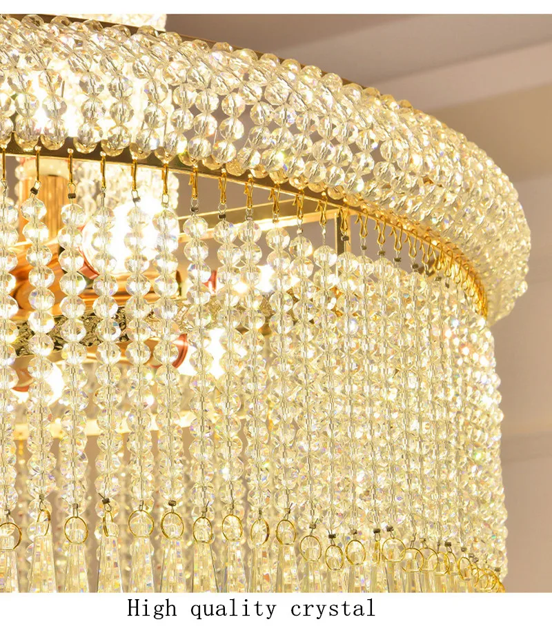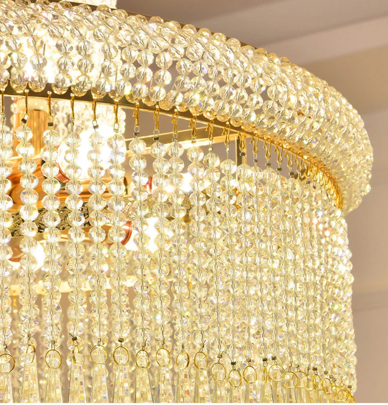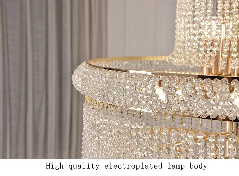 High Ceiling Luxury French Romantic Royal Gold Clean Crystal Long Necklace Lobby Villa Staircase Corridor Large Chandelier