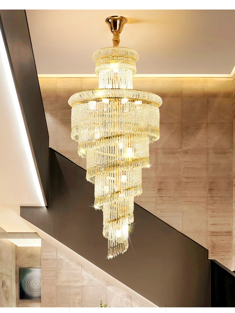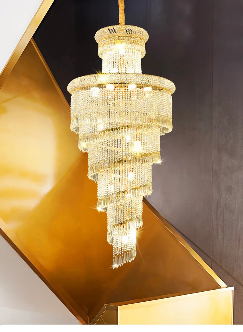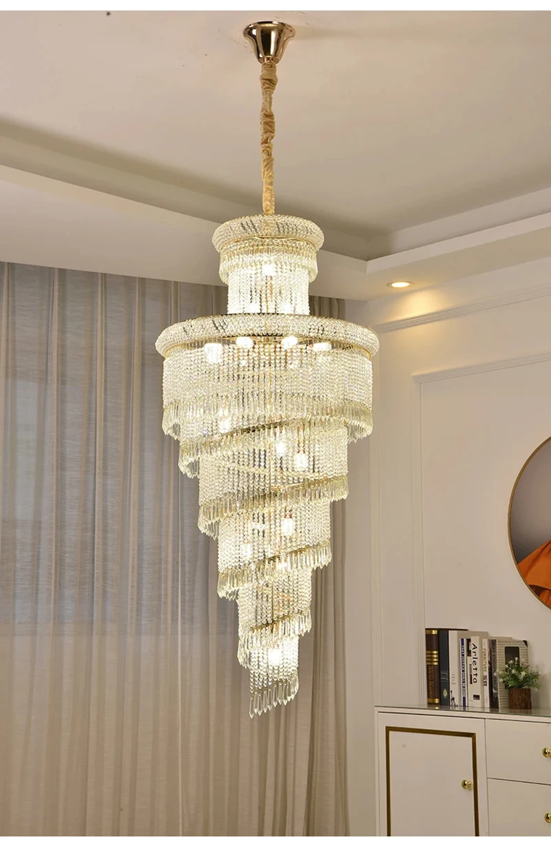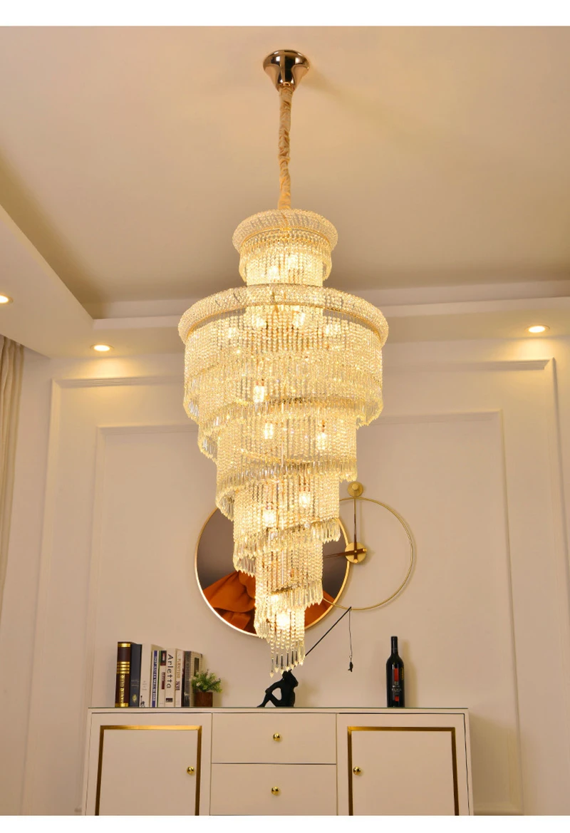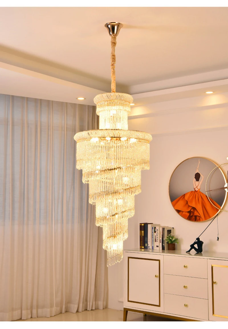 High Ceiling Luxury French Romantic Royal Gold Clean Crystal Long Necklace Lobby Villa Staircase Corridor Large Chandelier