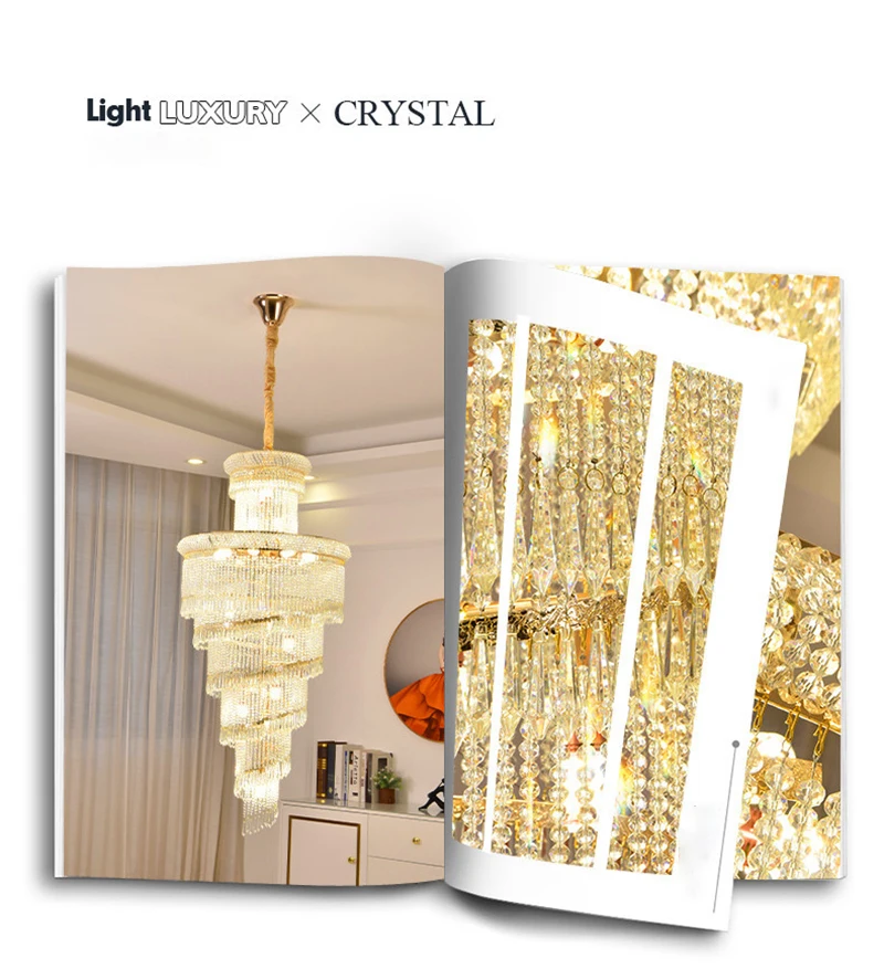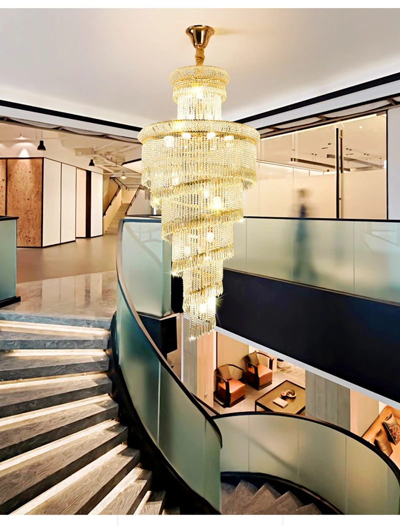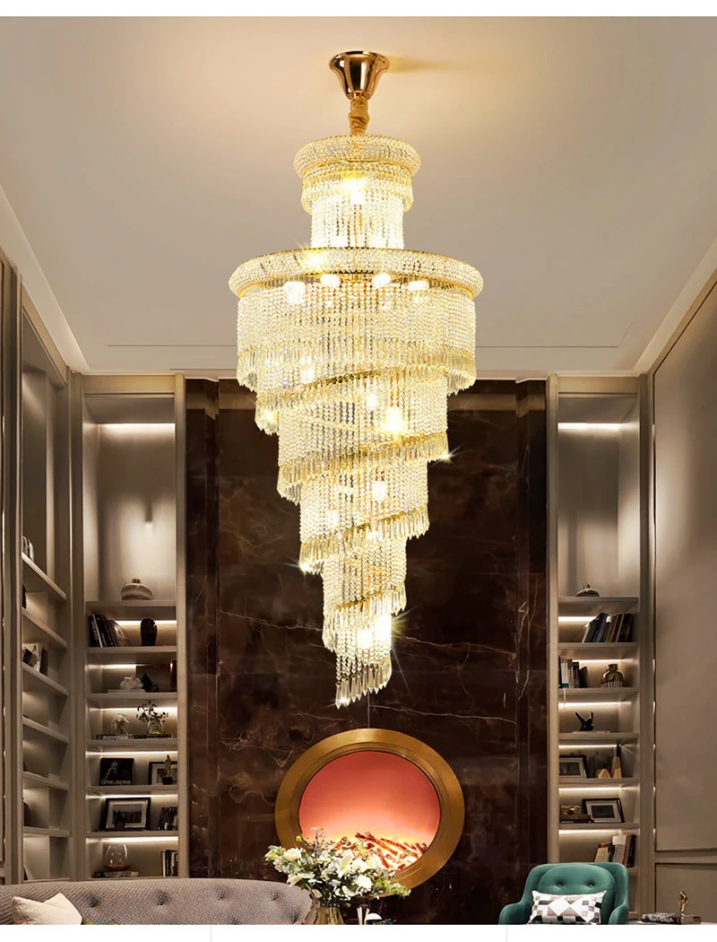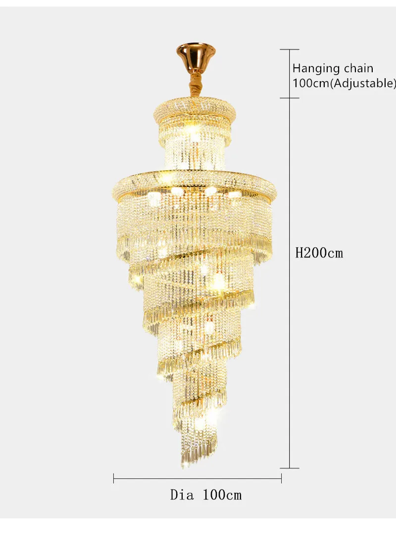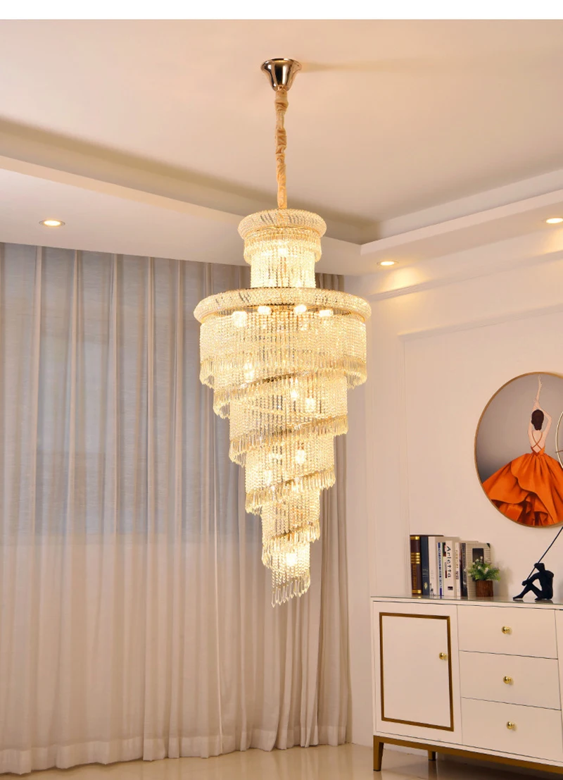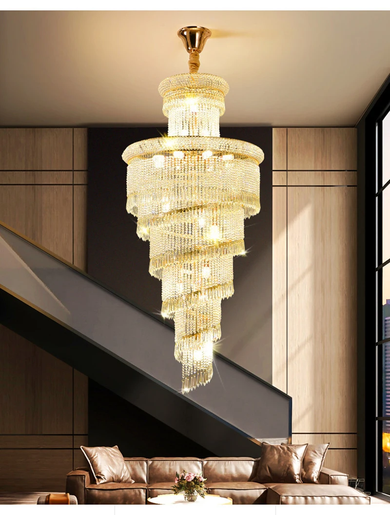 High Ceiling Luxury French Romantic Royal Gold Clean Crystal Long Necklace Lobby Villa Staircase Corridor Large Chandelier