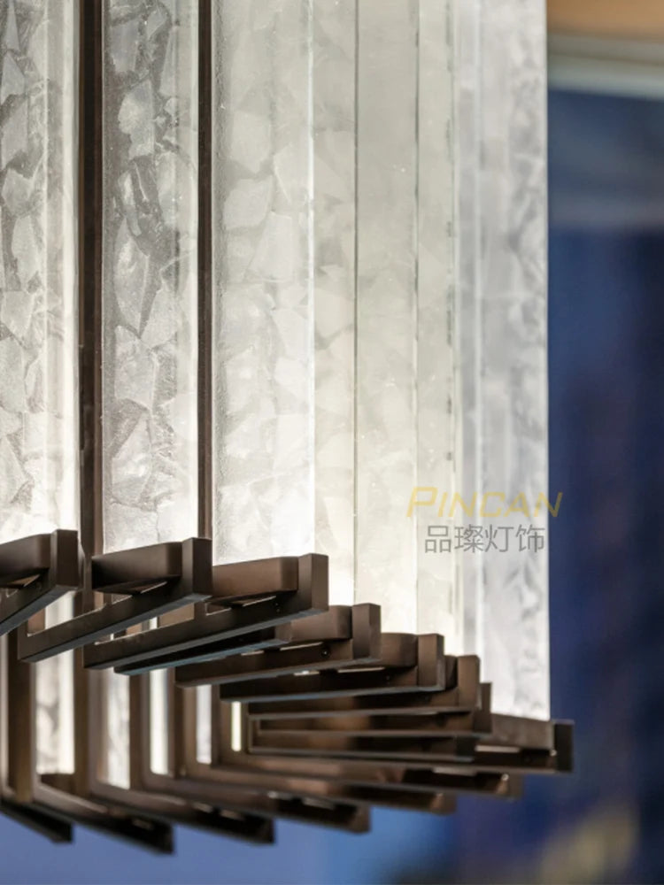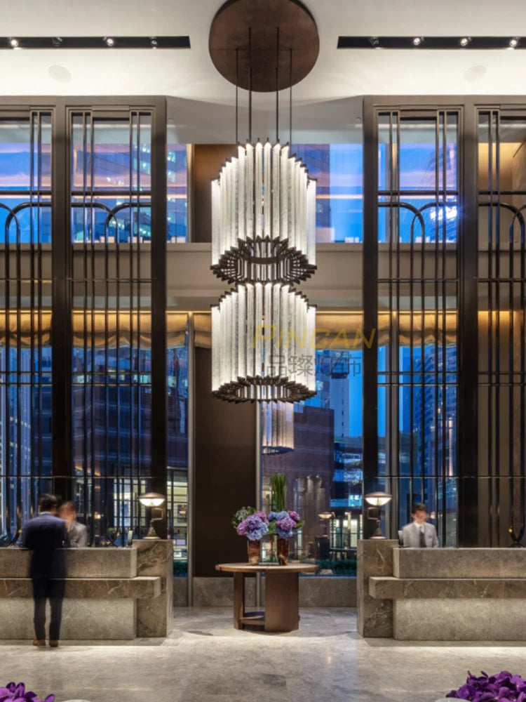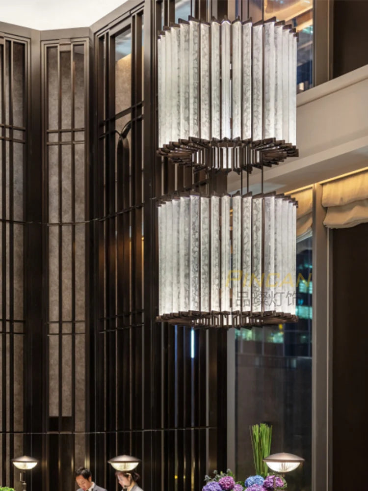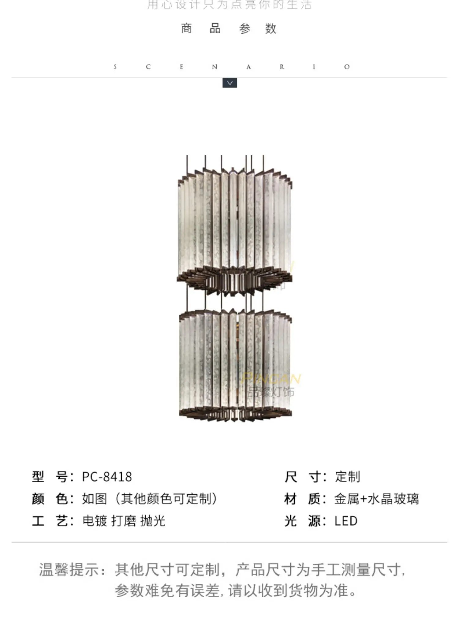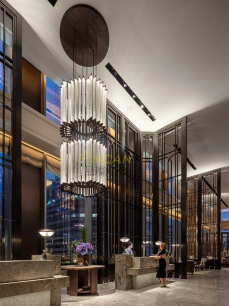 High-end atmosphere crystal ceiling lamp simple glass chandelier super long custom villa duplex building hollow loft lighting
