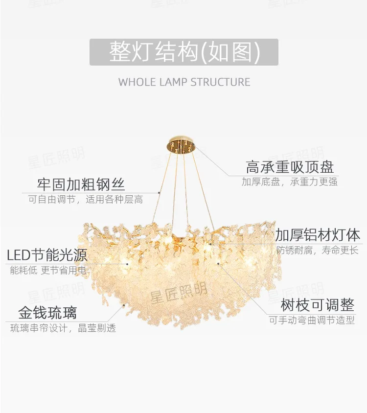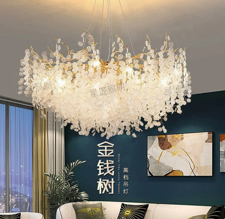 High-end atmosphere crystal lamp personality money tree chandelier light luxury living room bedroom dining room villa lighting