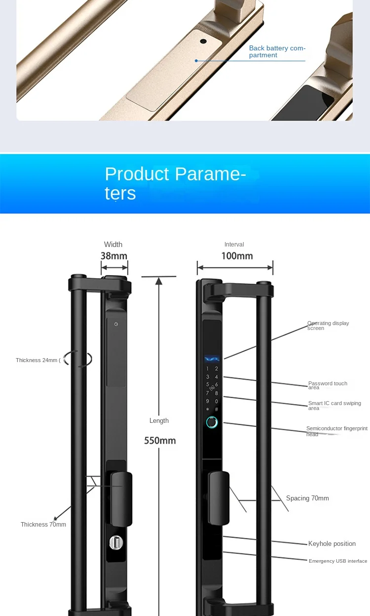 High-end broken bridge aluminum fingerprint lock big handle villa push-pull translation opposite door intelligent password door