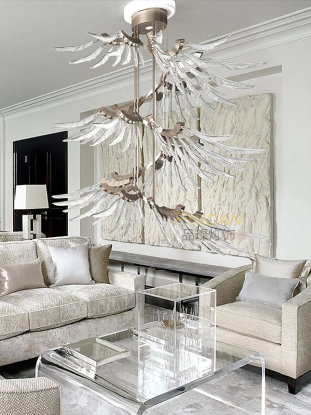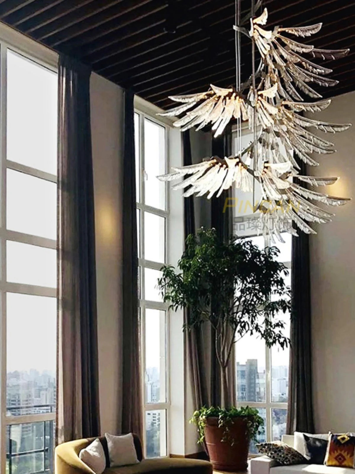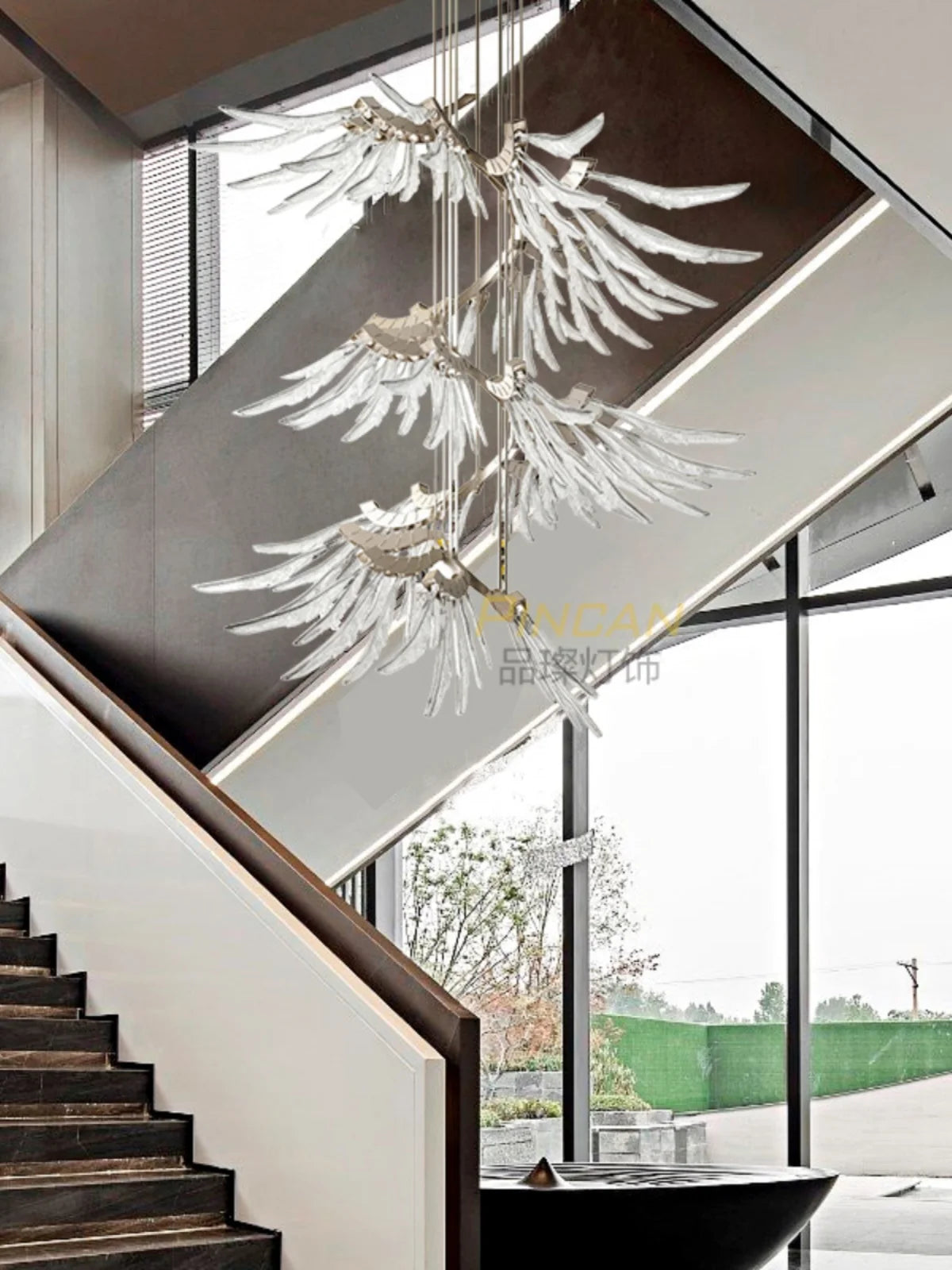 High-end crystal glass chandelier personality feather ceiling lamp atmospheric villa hollow Loft staircase Loft hall lighting