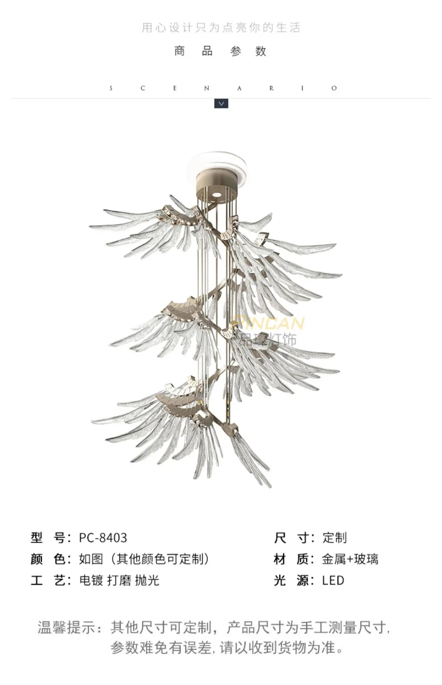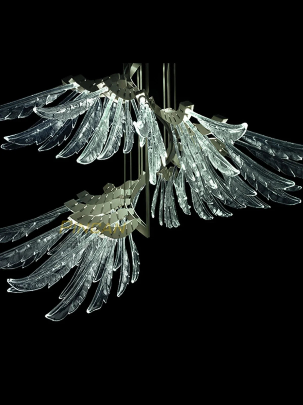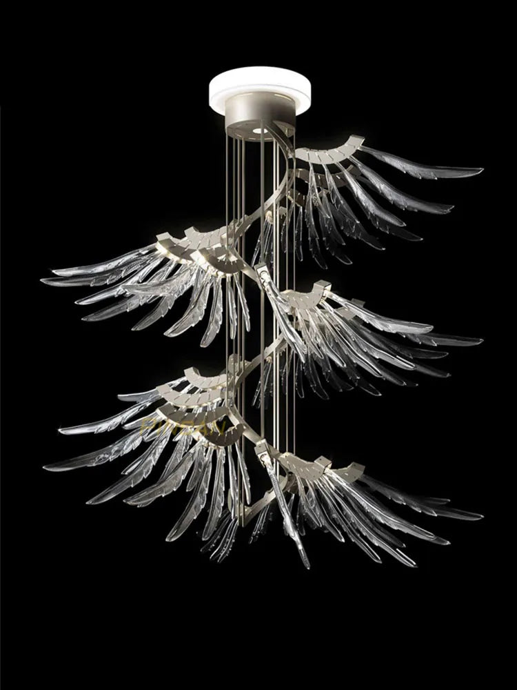High-end crystal glass chandelier personality feather ceiling lamp atmospheric villa hollow Loft staircase Loft hall lighting