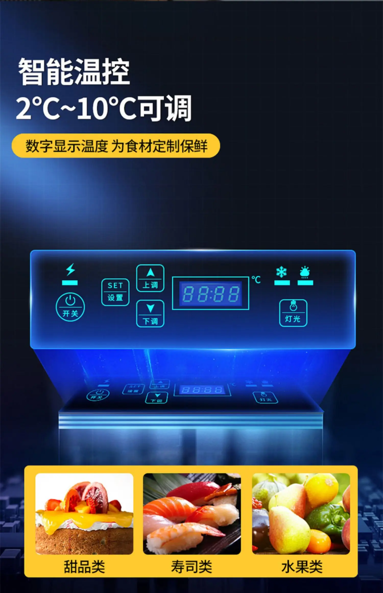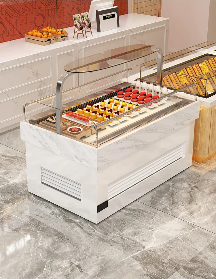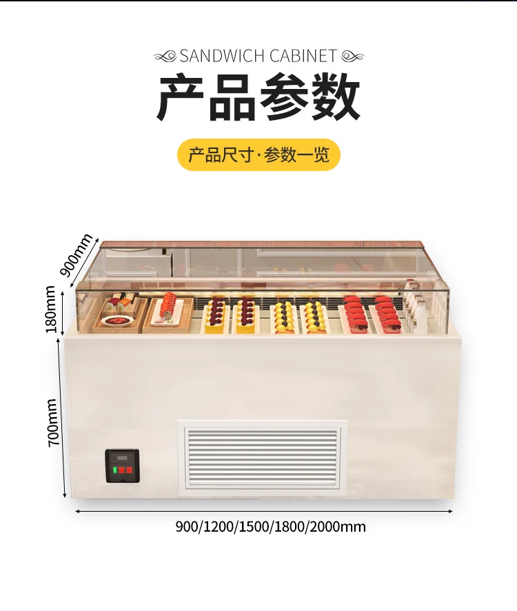 High end customized open sandwich freezer, horizontal island cabinet, fruit sushi fresh-keeping dessert cake display cabinet