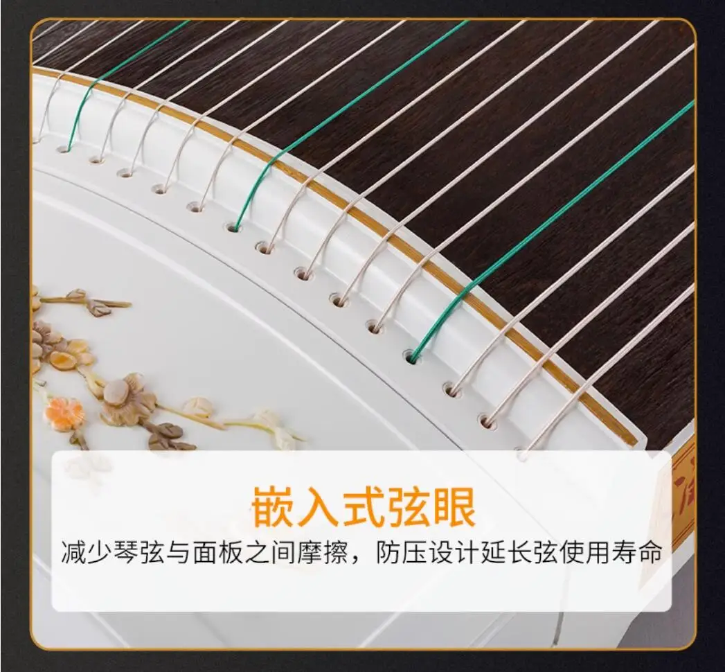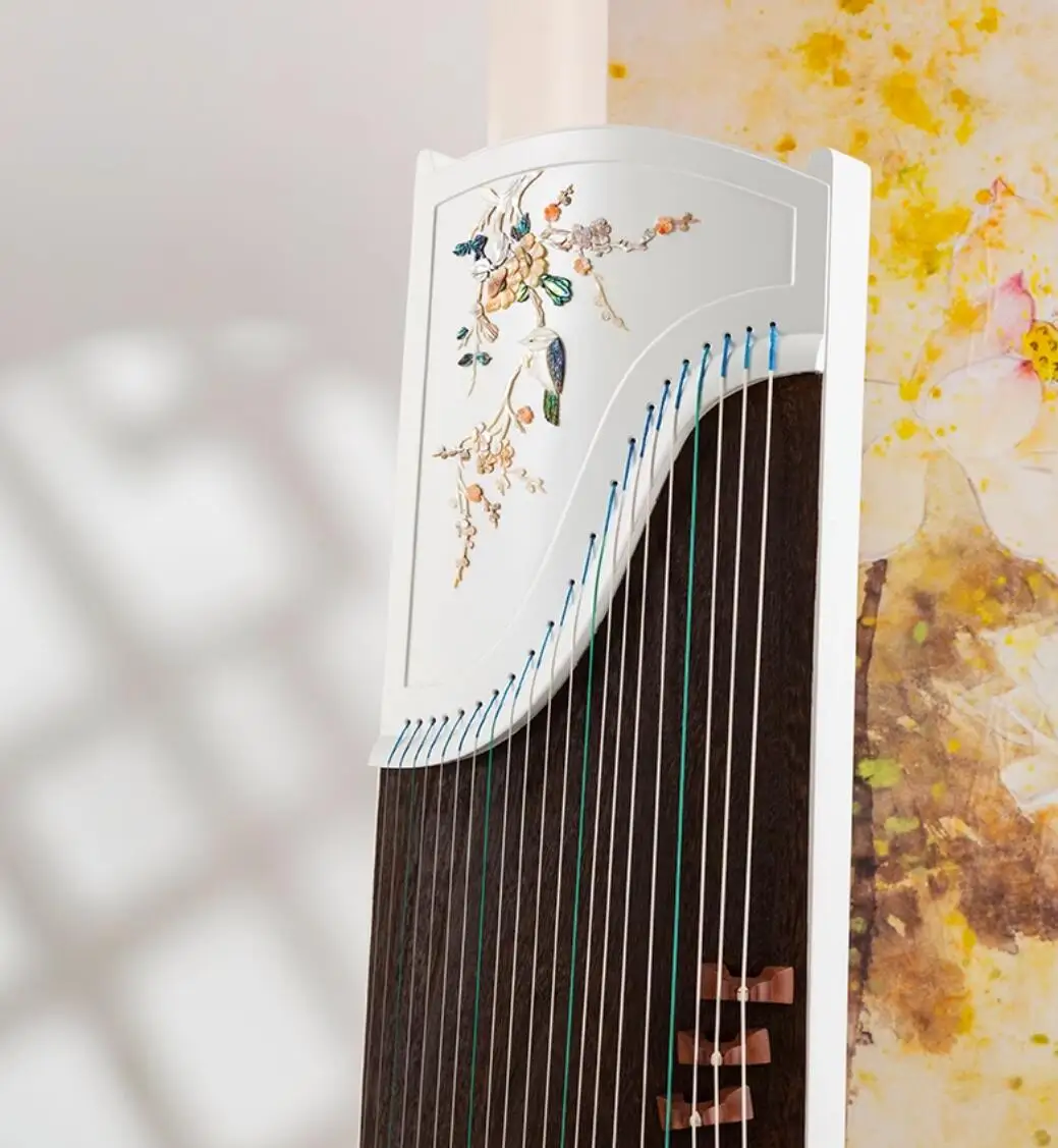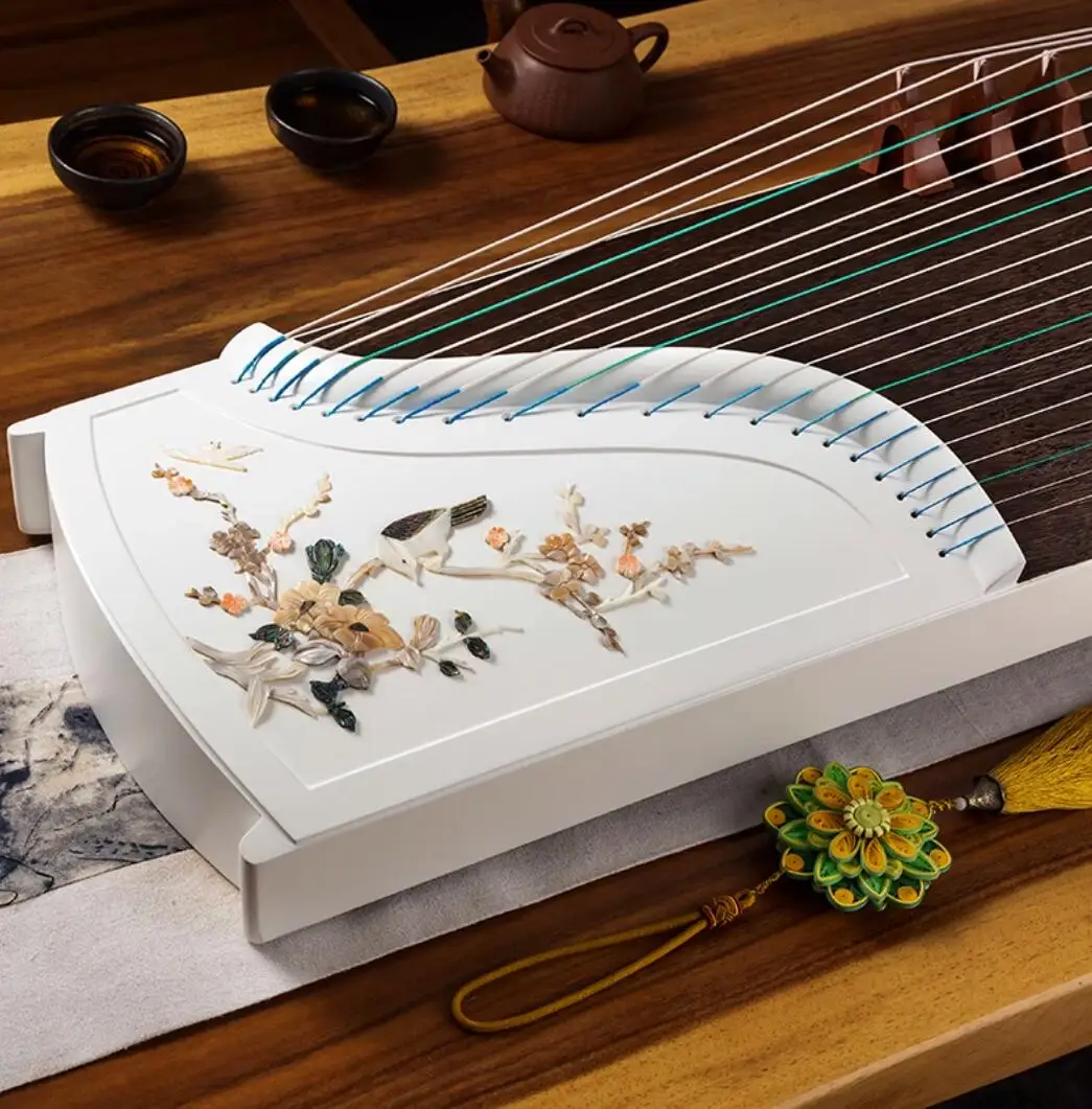 High-end Natural Shells White Carving Guzheng Pattern Handmade Inlay Zither Chinese 21 Strings Music Instrumment