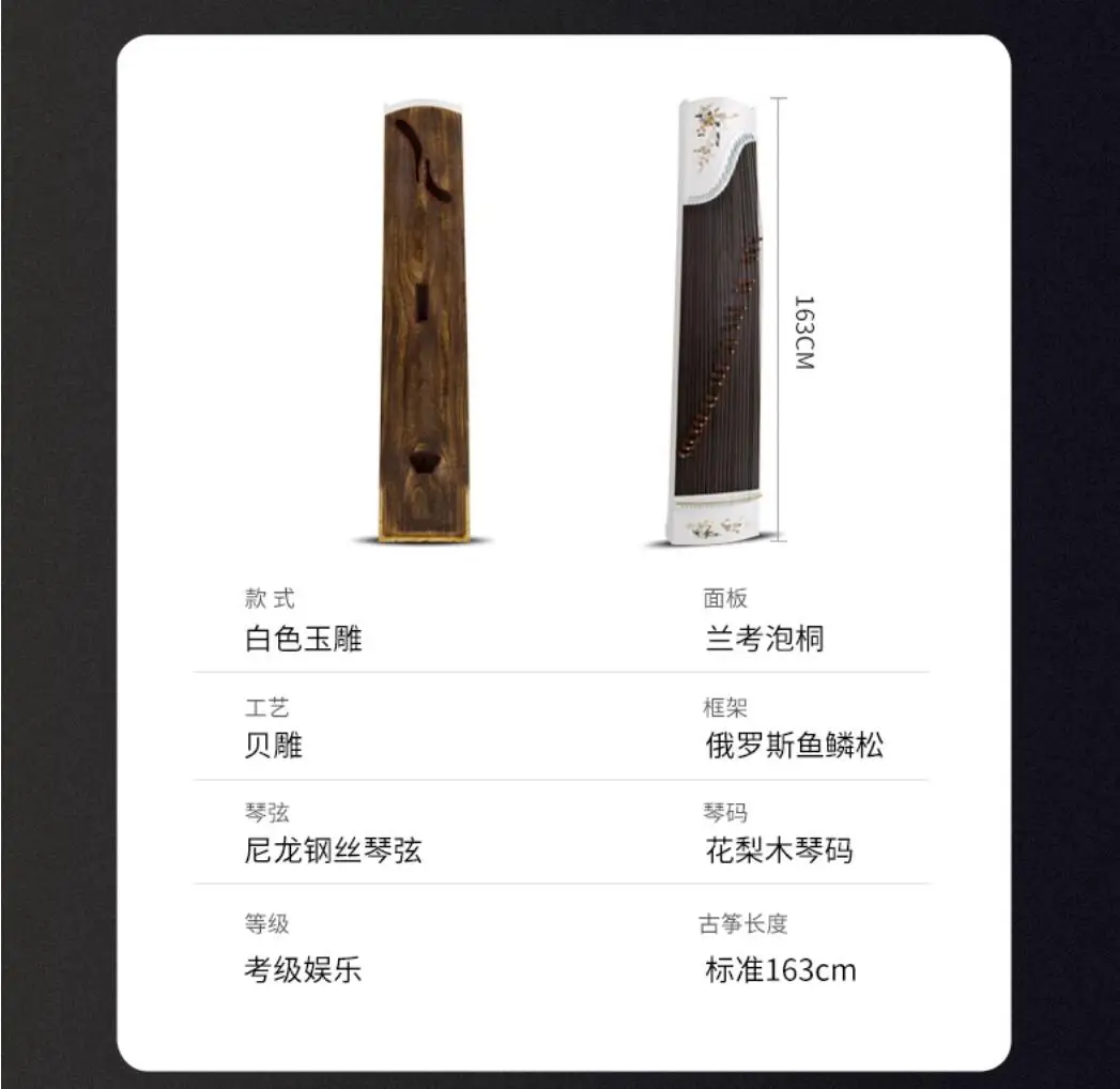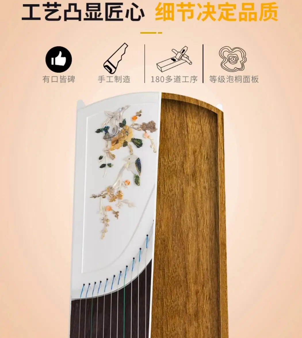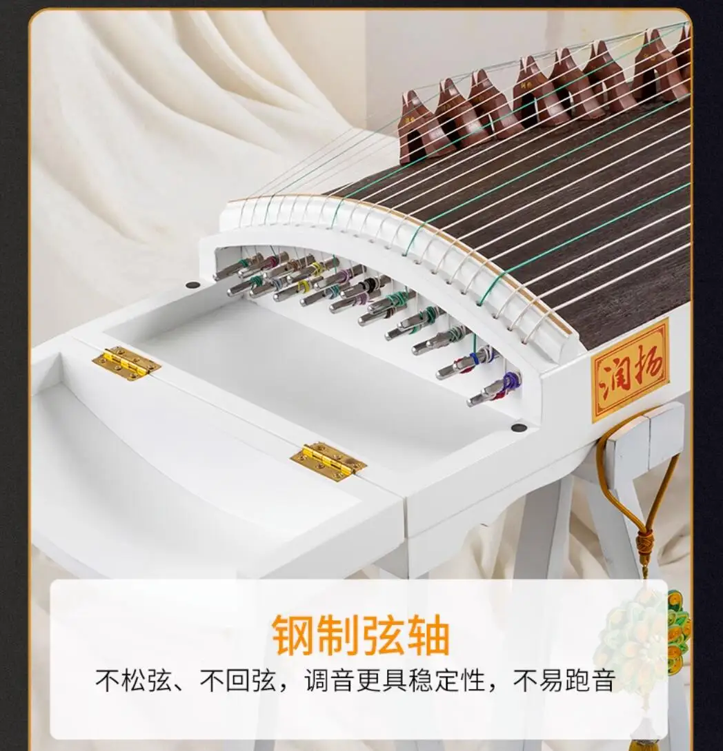 High-end Natural Shells White Carving Guzheng Pattern Handmade Inlay Zither Chinese 21 Strings Music Instrumment