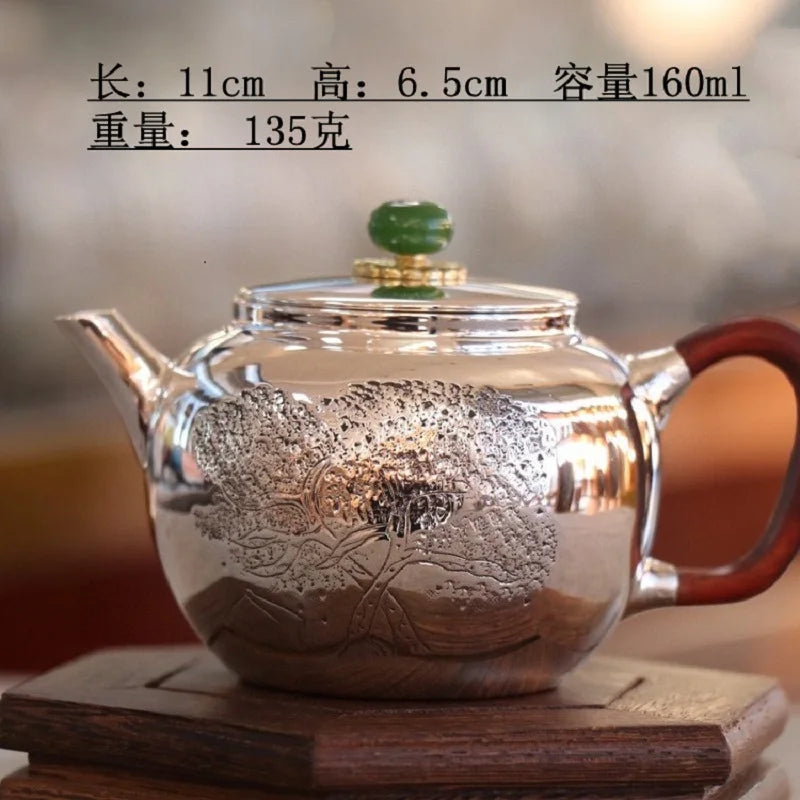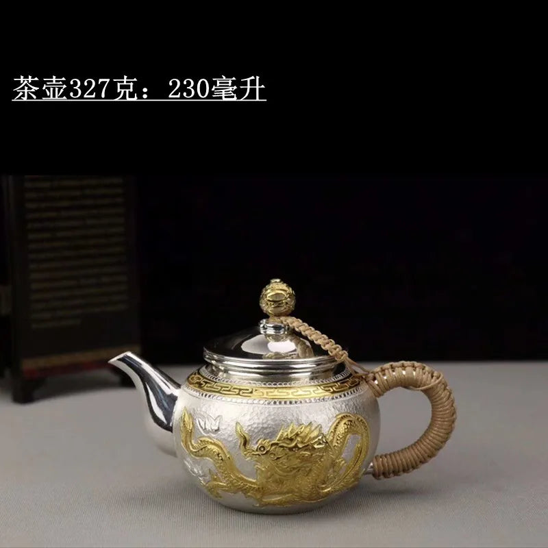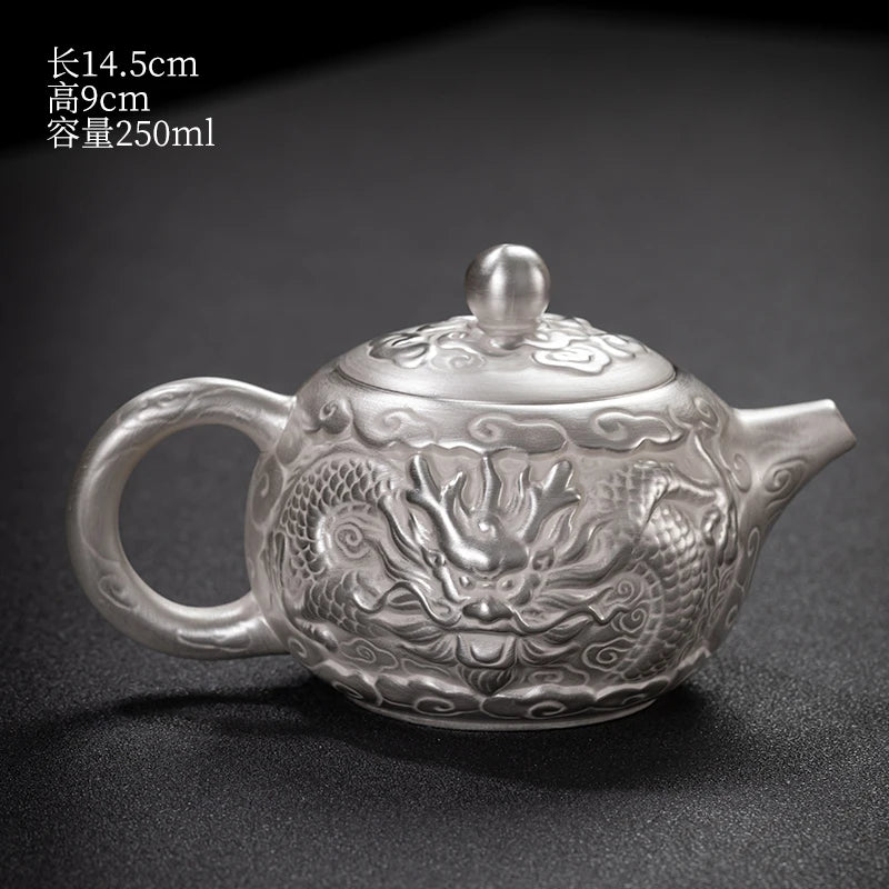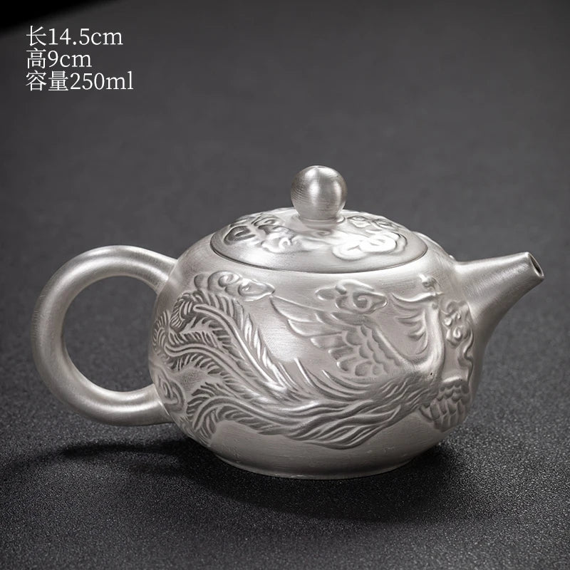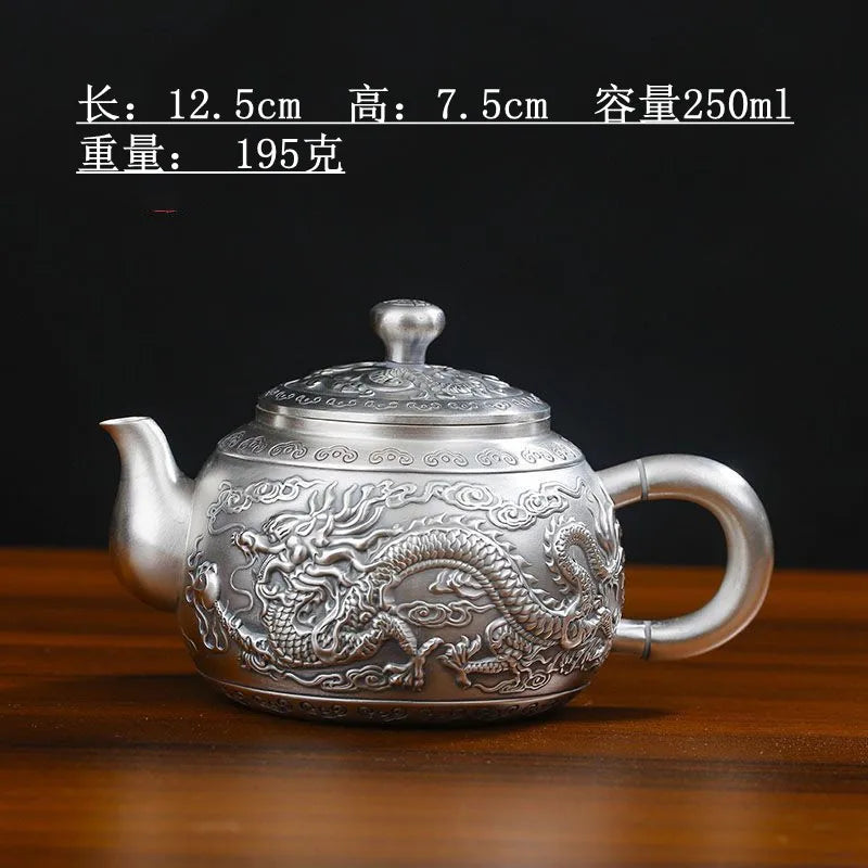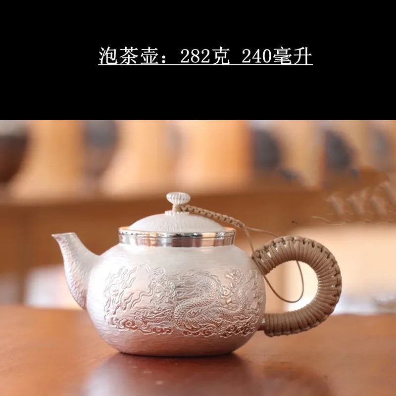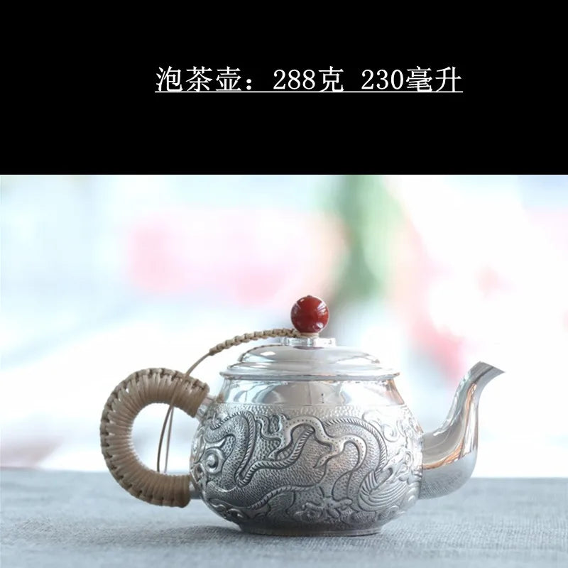 |high-grade teapot 999 sterling silver hand relief fine silver side longfeng xi shi the household single pot pot of tea