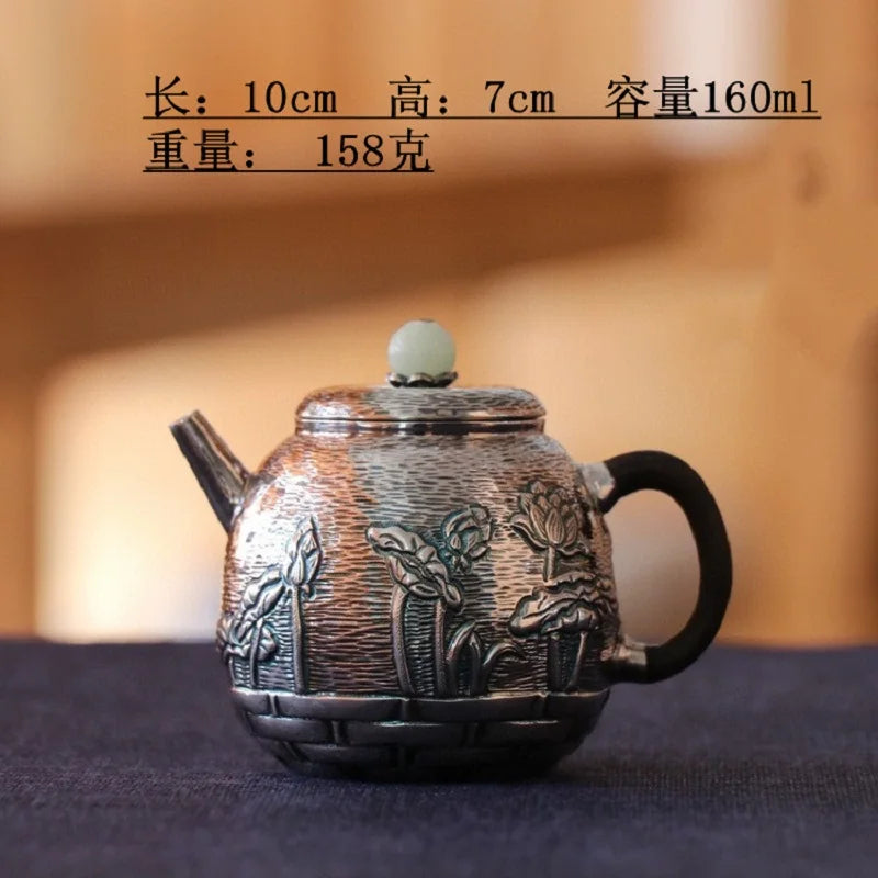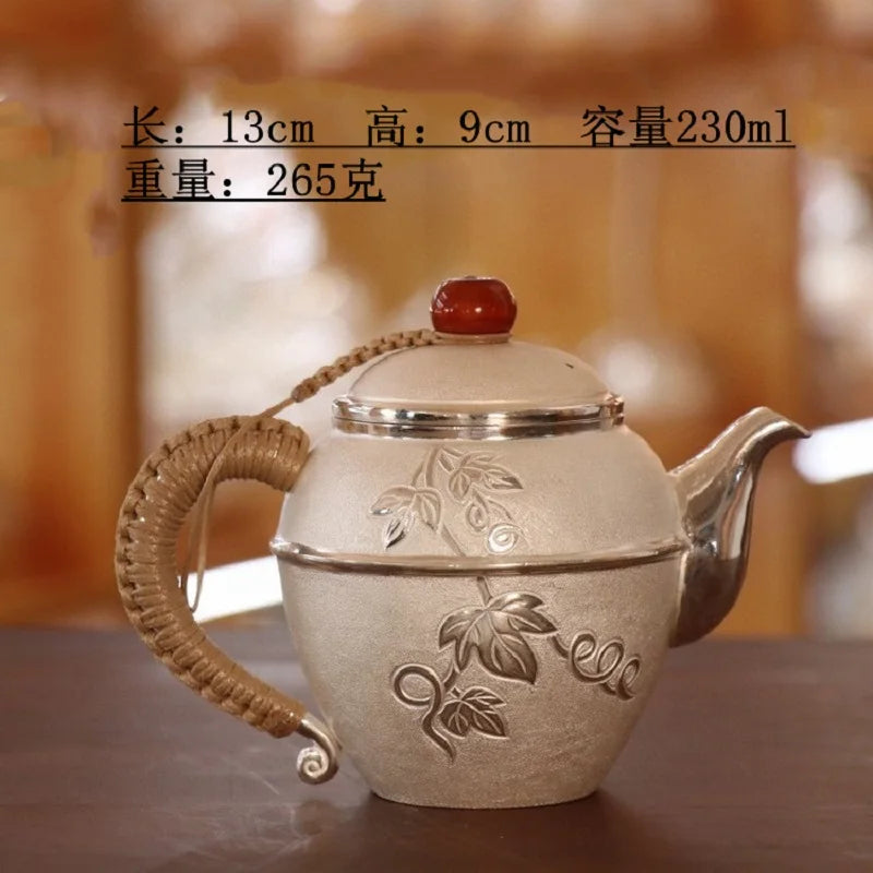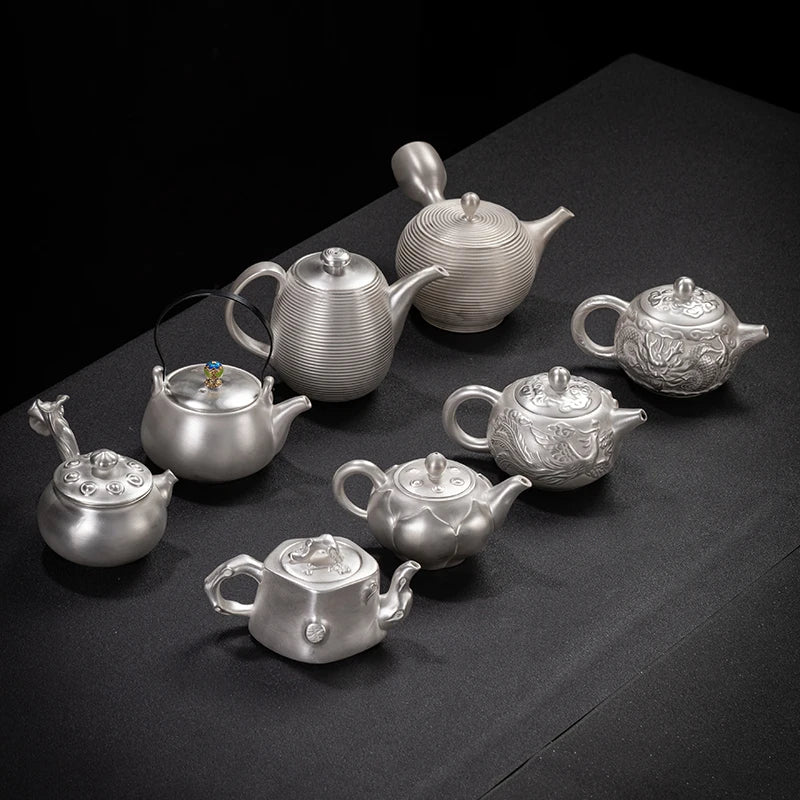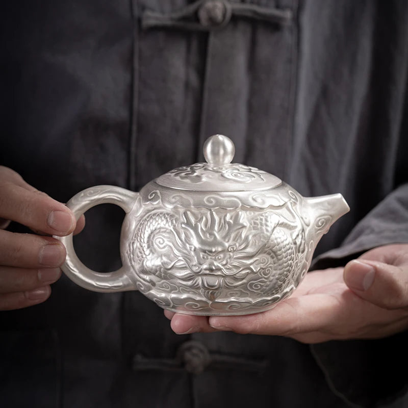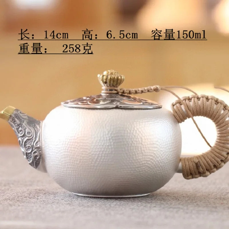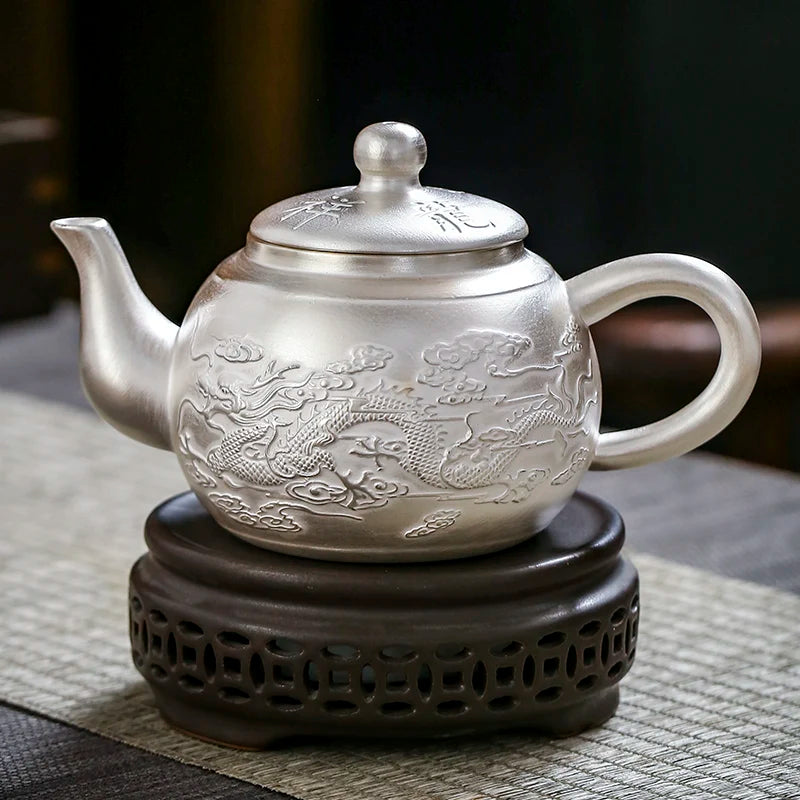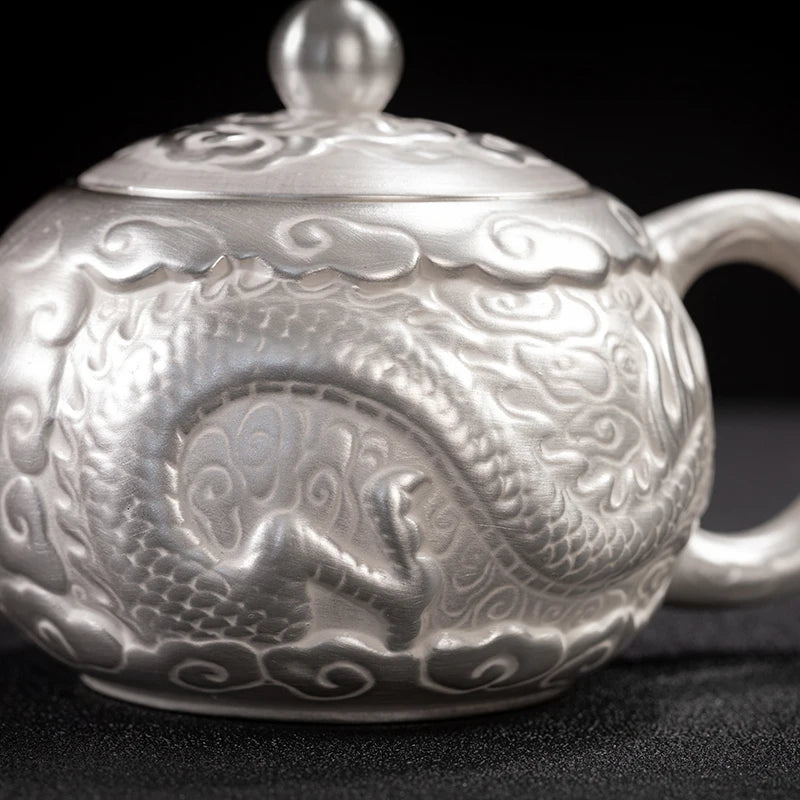 |high-grade teapot 999 sterling silver hand relief fine silver side longfeng xi shi the household single pot pot of tea
