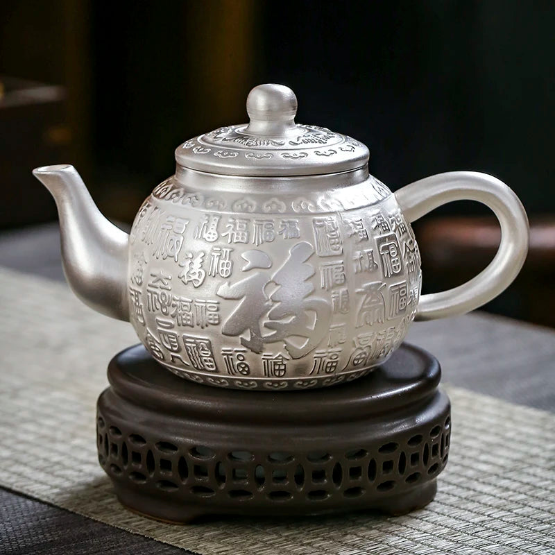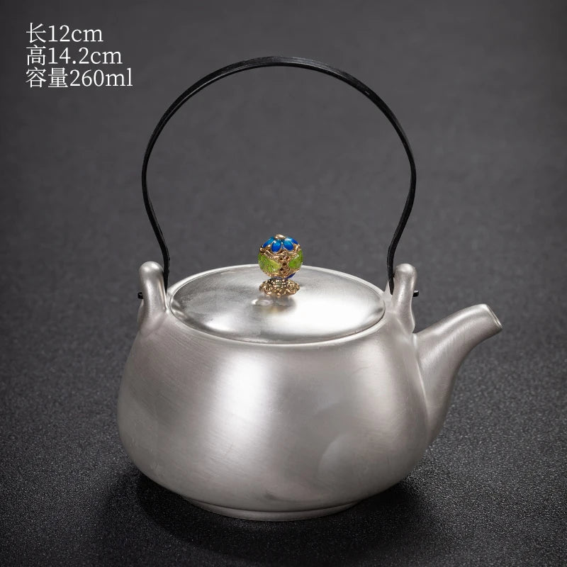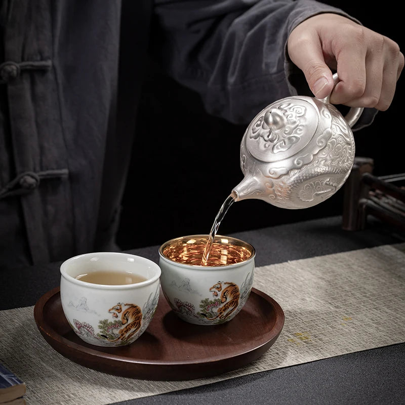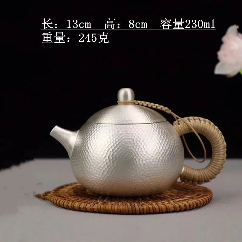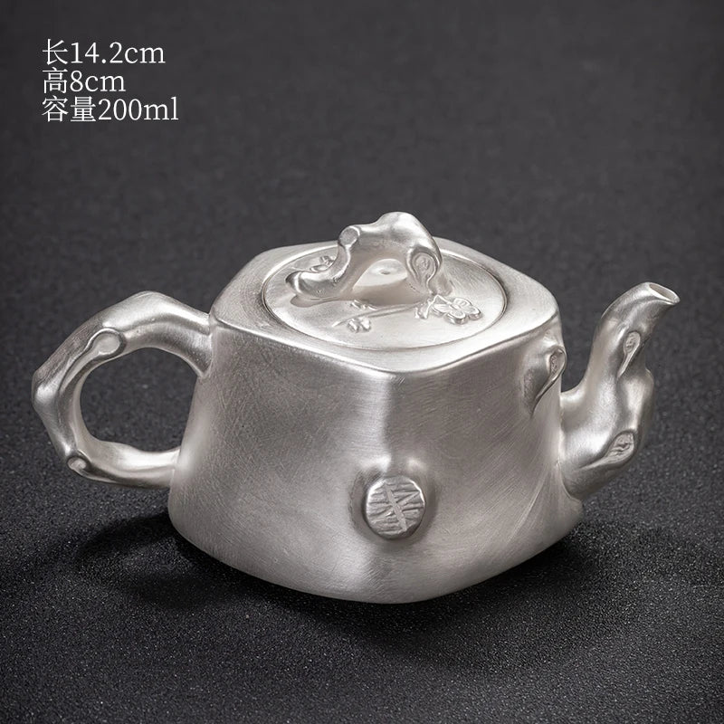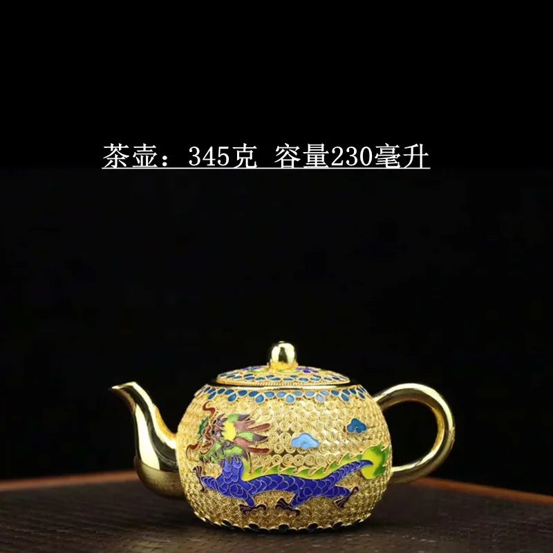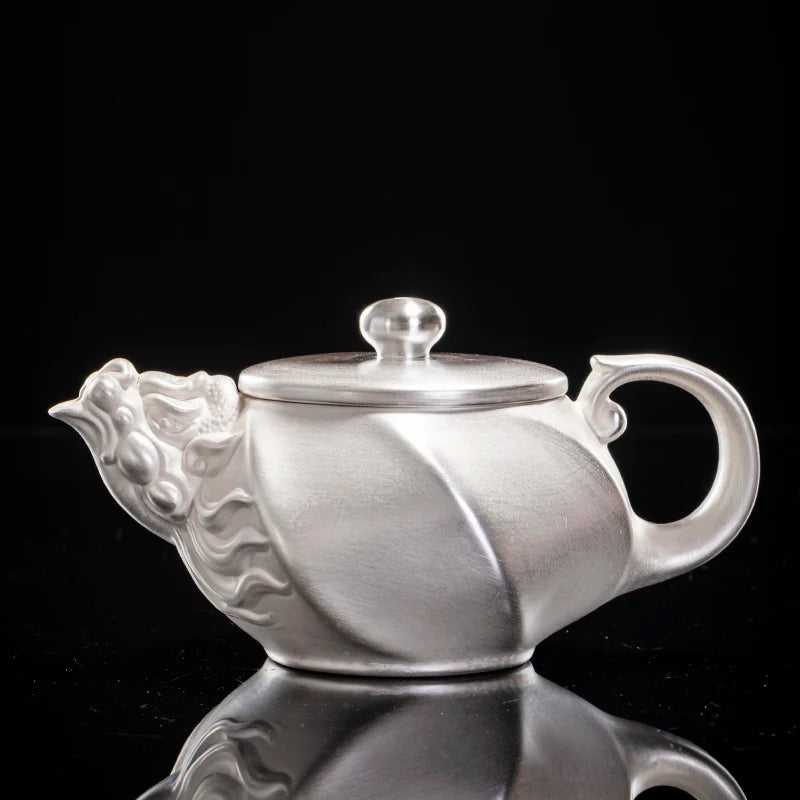 |high-grade teapot 999 sterling silver hand relief fine silver side longfeng xi shi the household single pot pot of tea