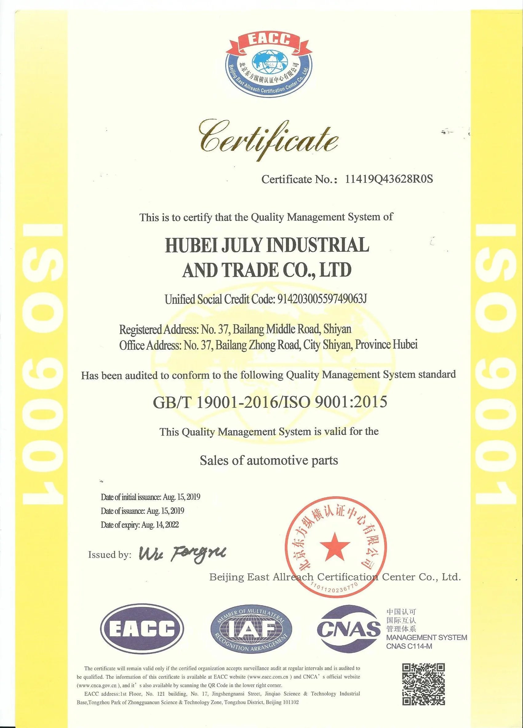 Hubei July Industrial and Trade Co.,Ltd is a member of CCOIC (China Chamber of International Commerce), located in the commercial vehicle production base - Shiyan City , China, with the renowned brand “Dongfeng”. Our company is a reliable supplier ,mainly specialized in the wholesale of full line original auto parts, including:
