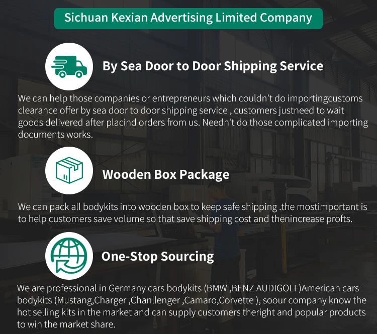 We have body kits for German cars, American cars, Japanese cars, and pickup trucks