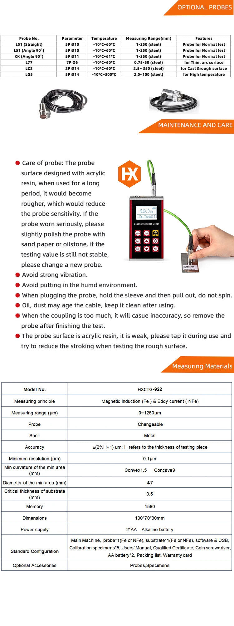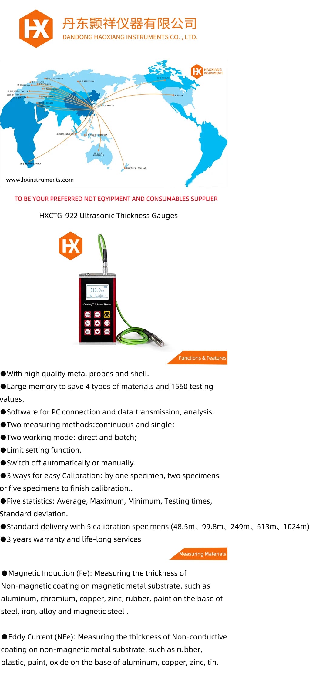 High Precision Ultrasonic Thickness Gauge coating measuring instrument Thickness Meter HXCTG-922