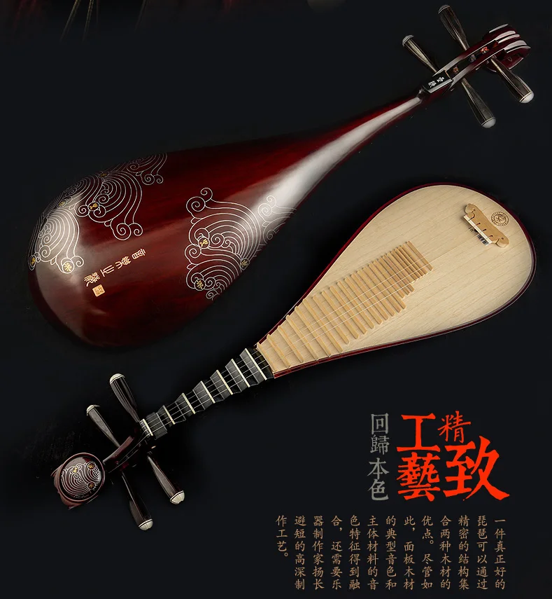 High Quality Professional Lute Pipa Chinese Folk Instruments Special Mahogany Material 4 Strings Musical Instrument for Adult