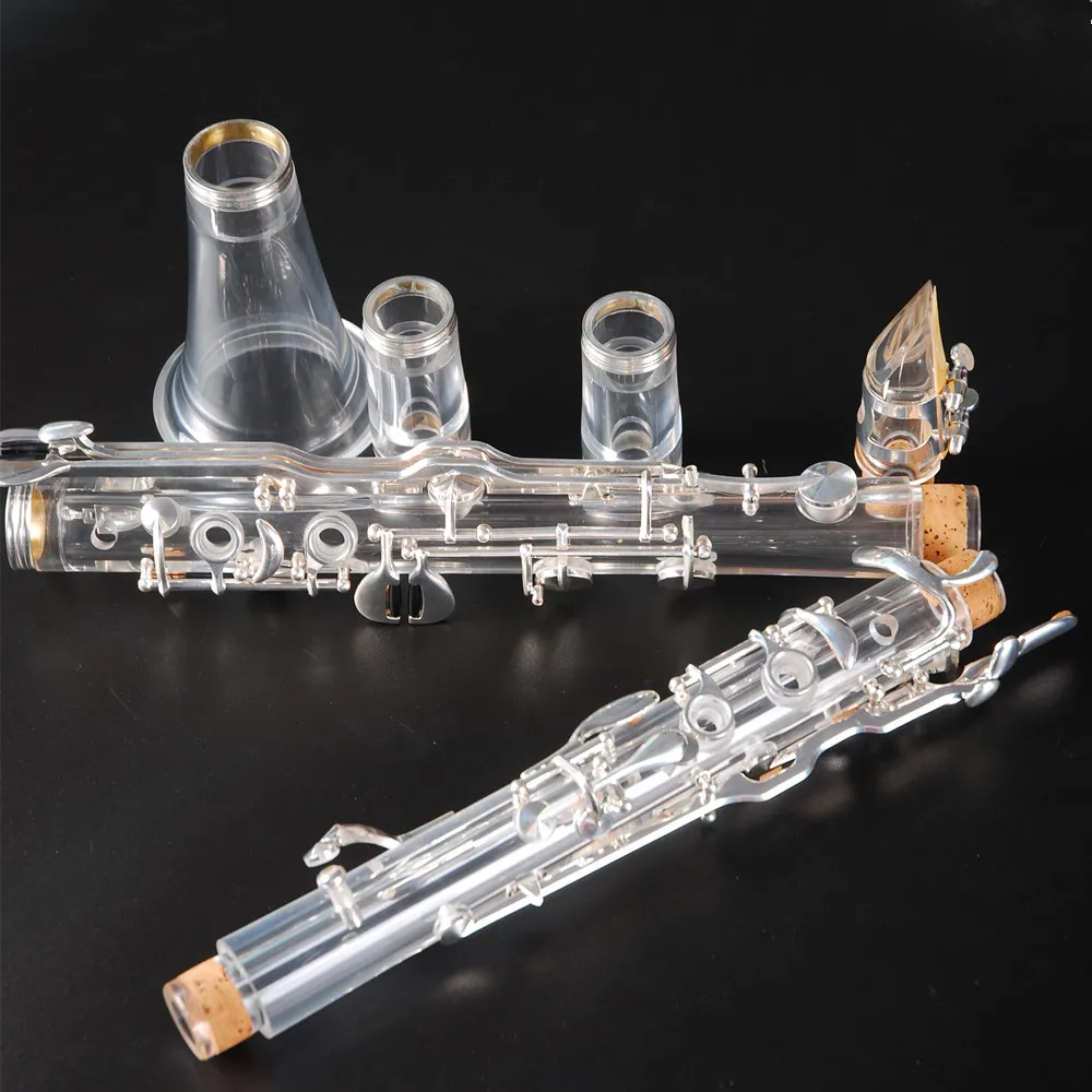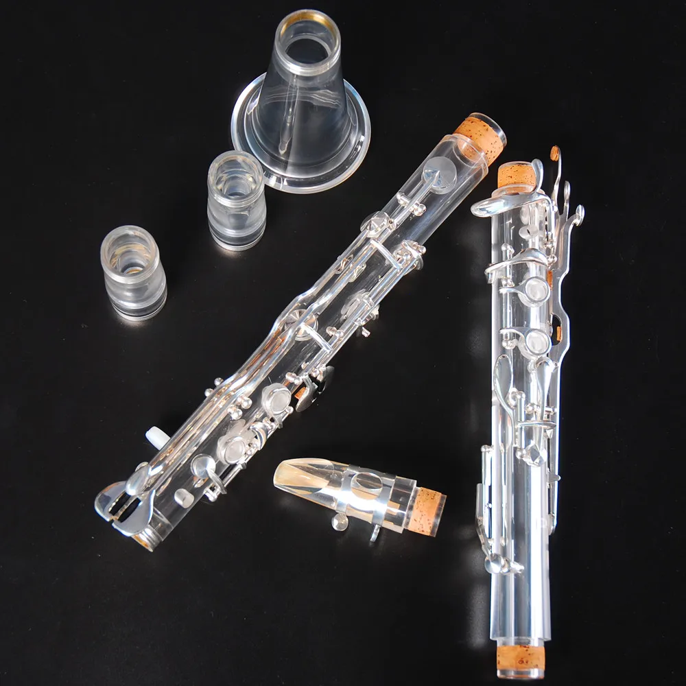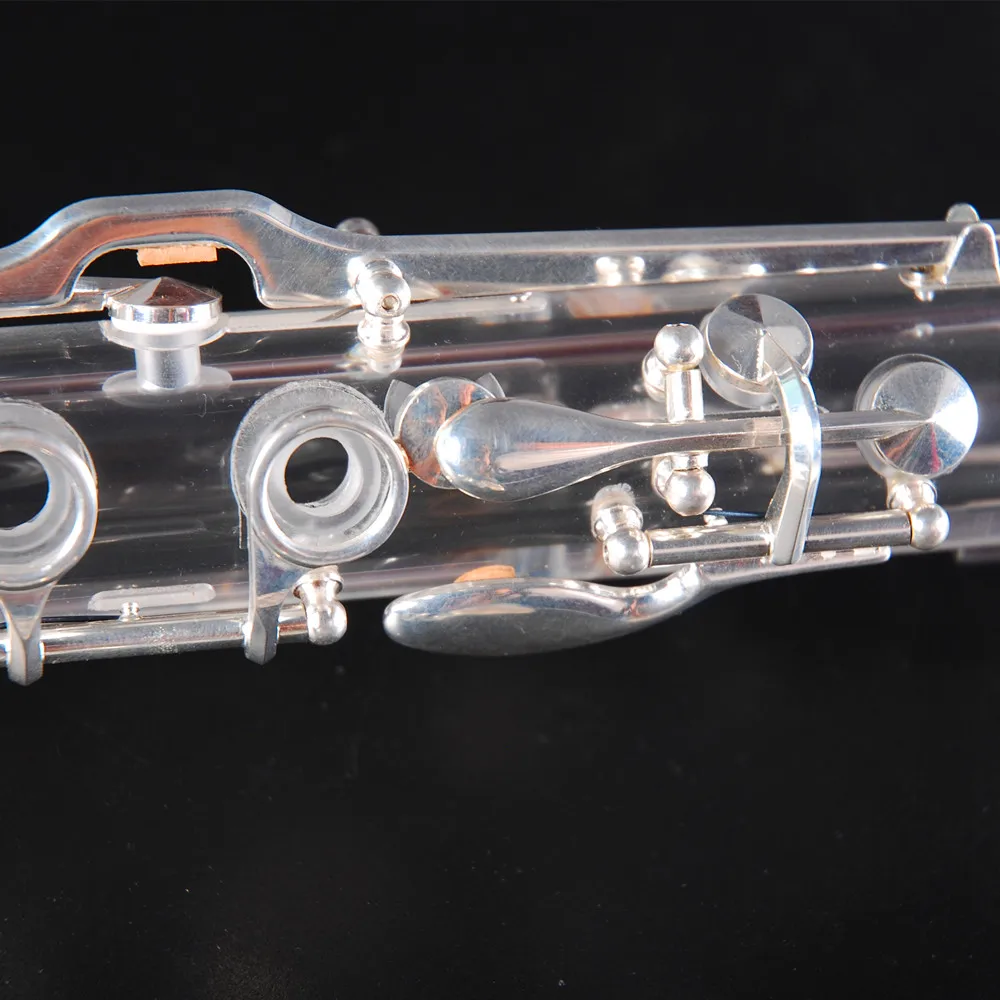 The pipe body is made of plexiglass material The tone is round and full Transparent tube body silver plating keys Make the whole instrument elegant and luxurious