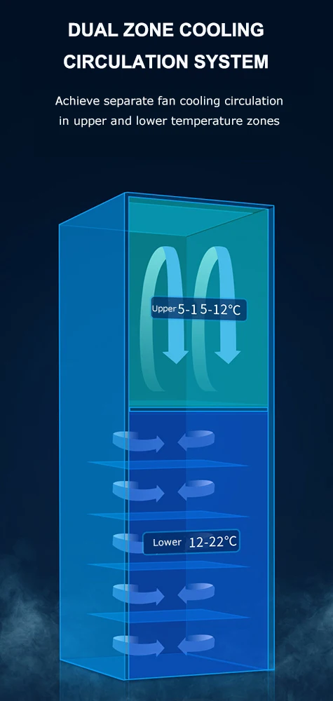 Energy-saving and power-saving LED soft blue lights are installed on the top and both sides of the cabinet to illuminate the interior without affecting the storage of red wine.