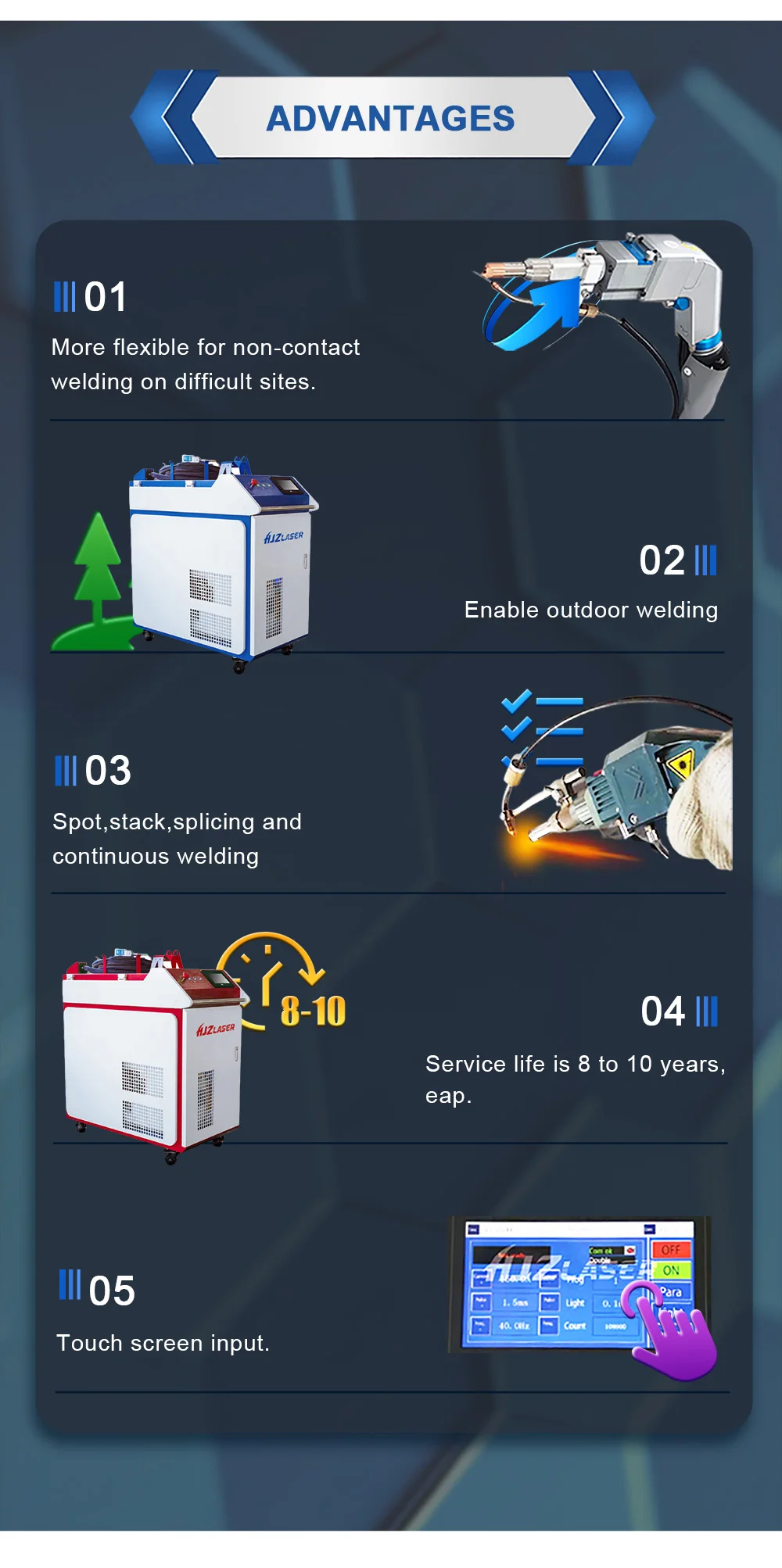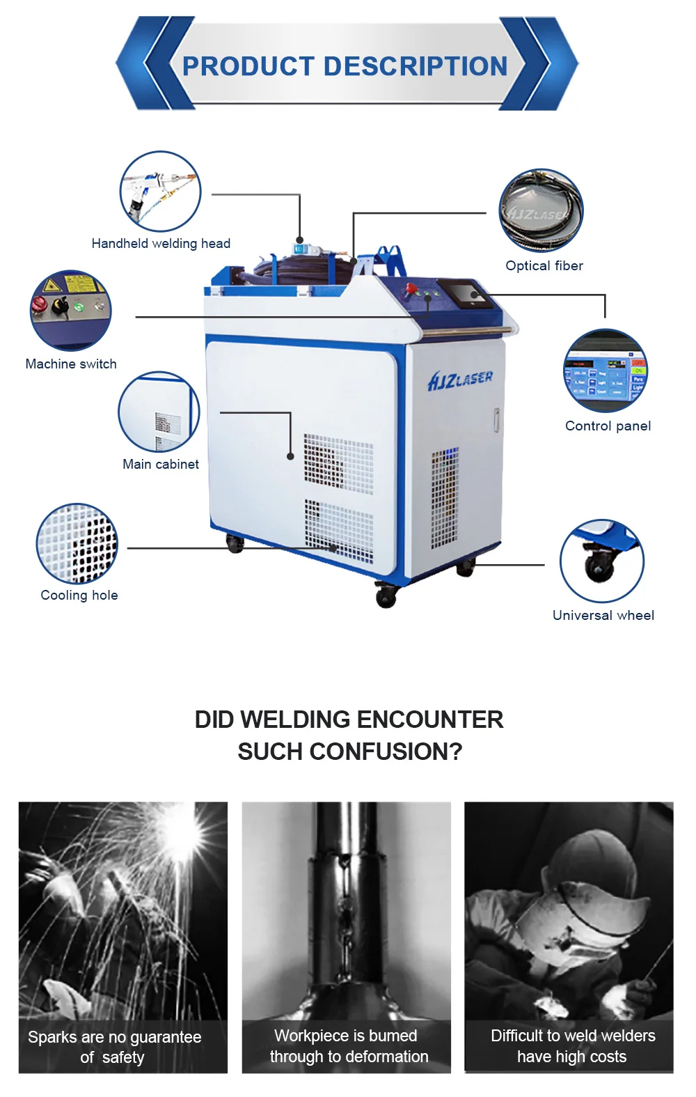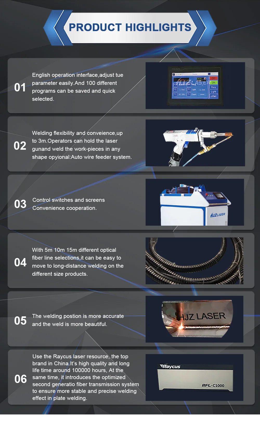 HJZ laser welding machine adopts the latest generation of fiber laser and is equipped with self-developed welding head. It has the advantages of simple operation, beautiful weld seam, high welding speed and no consumables.
