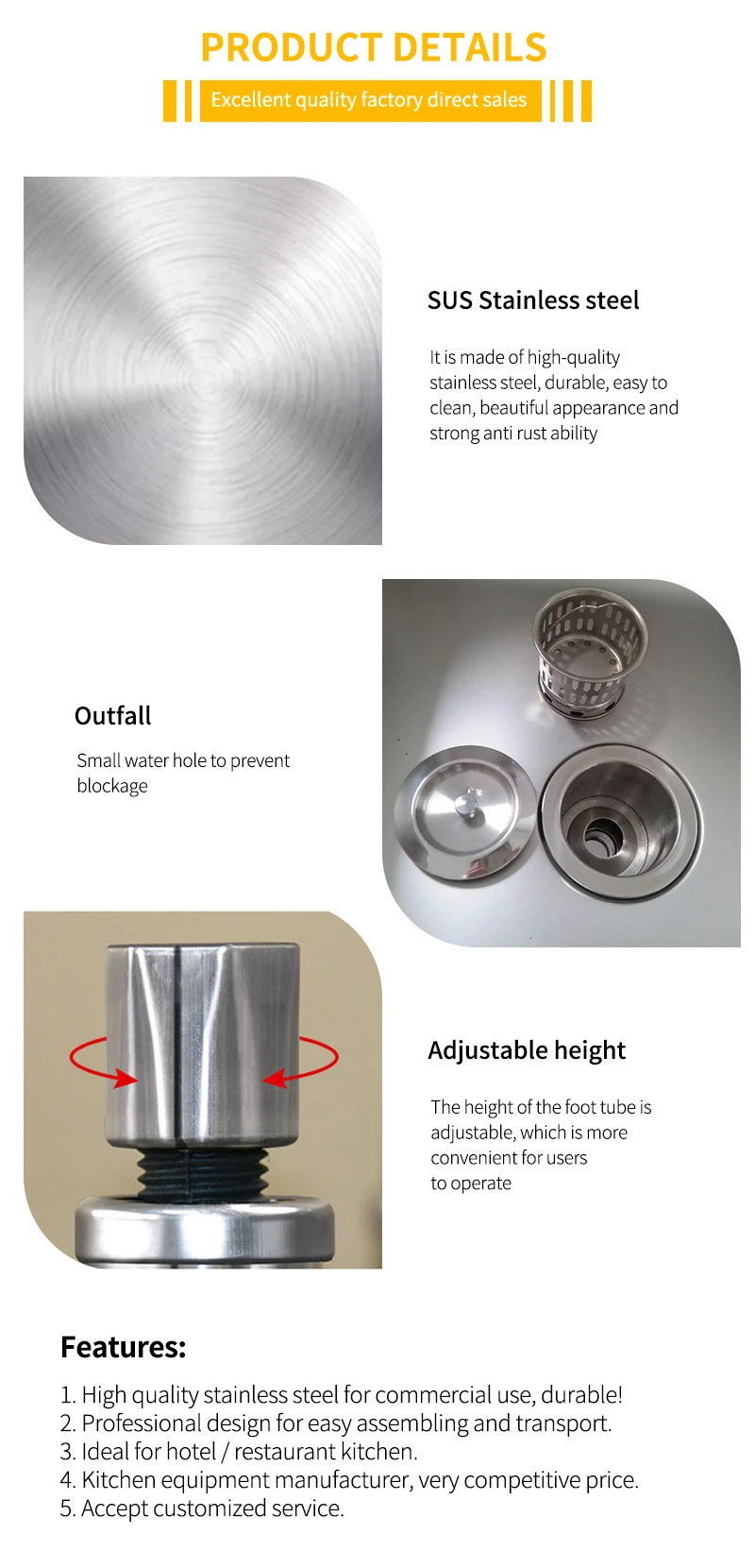 1.Advanced 201 or 304 stainless steel structure, brushed surface treatment, durable and easy to clean.
