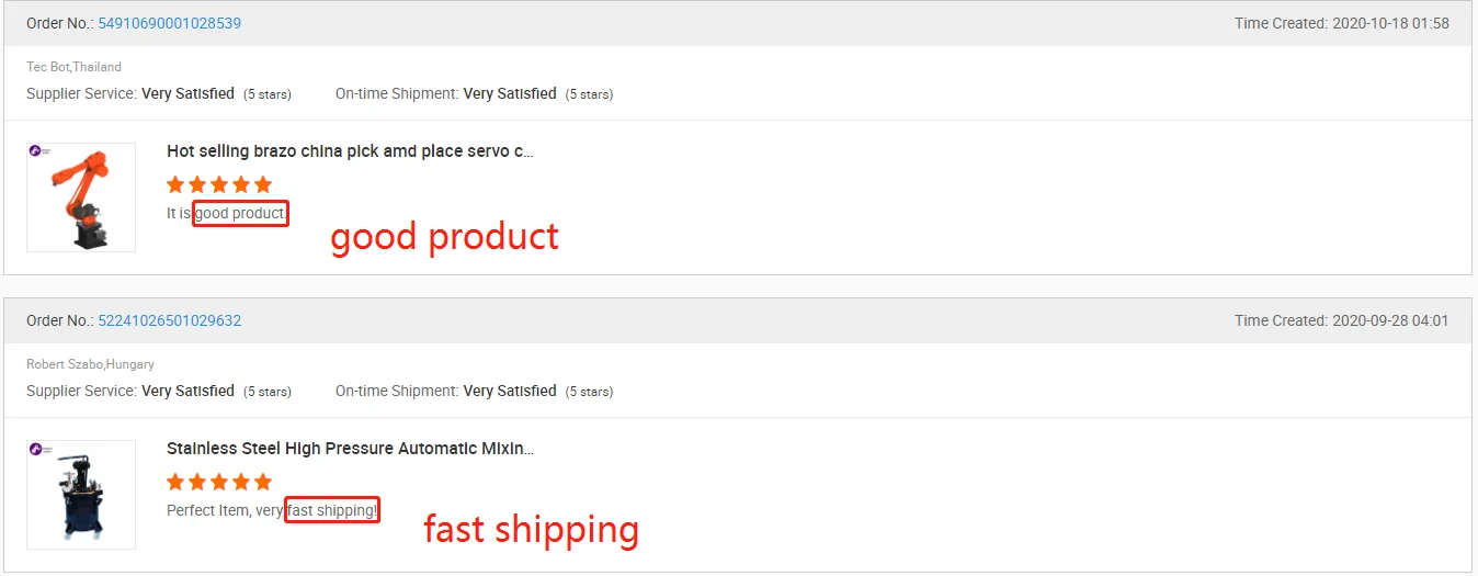 A: Our product preparation time is about 7-15 days. If we have robot in stock, we can send out immediately.