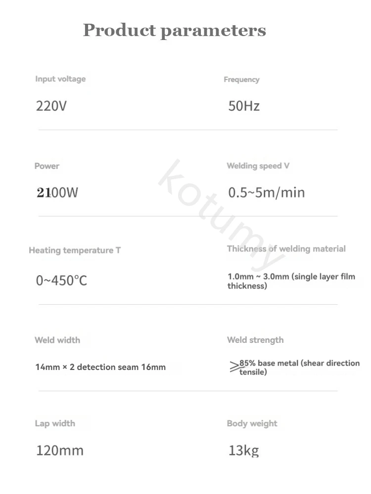 Welding material thickness: 1.0mm~3.0mm (single-layer film thickness)