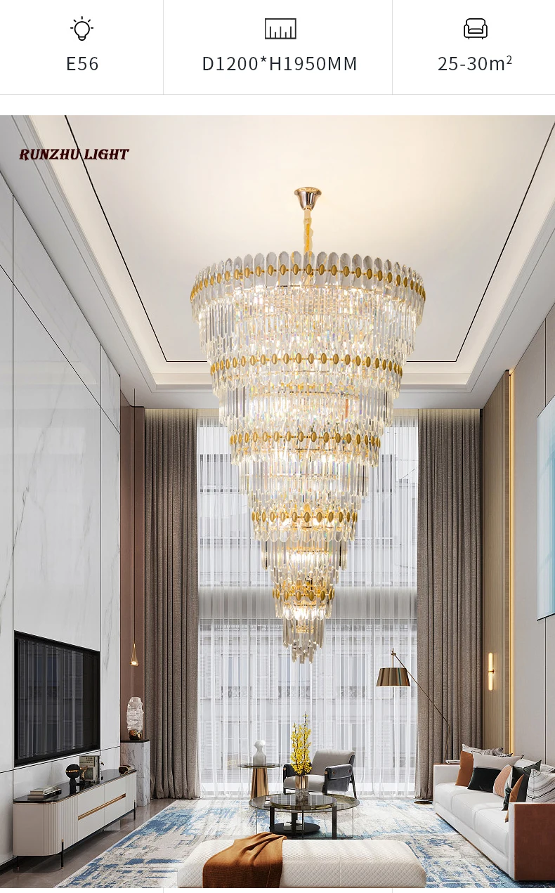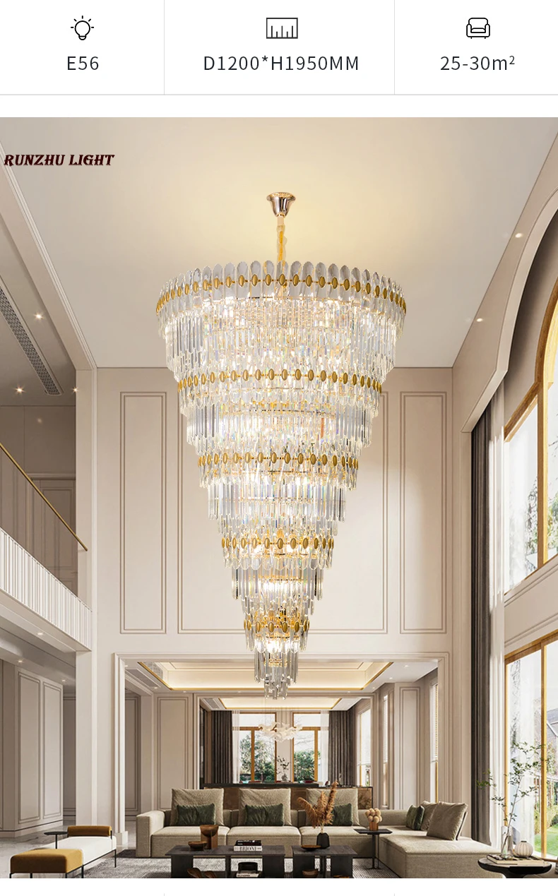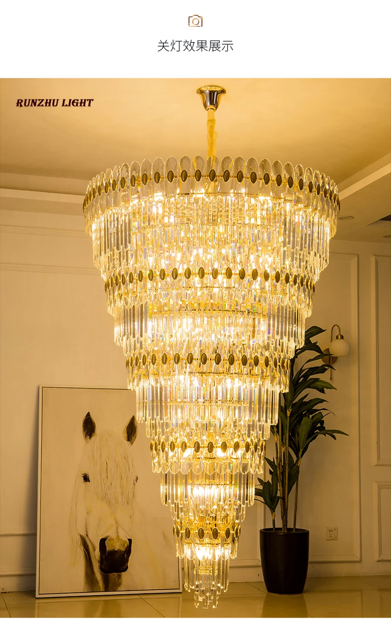 Hotel Engineering Headlights, Villa Living Room, Large Chandelier, Duplex Building, Crystal Light, Staircase Long Chandelier