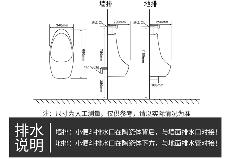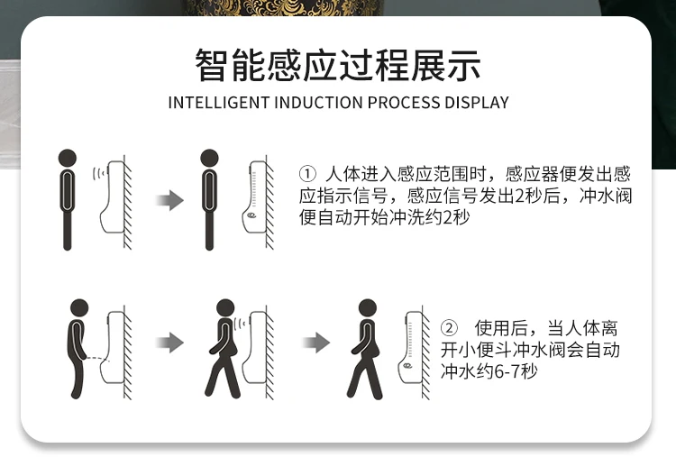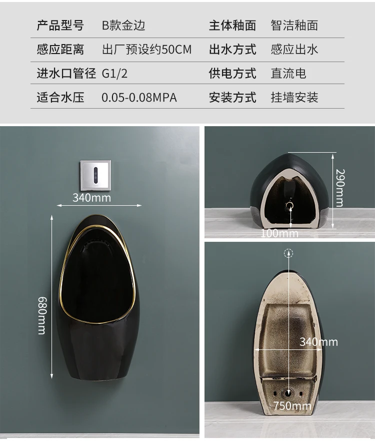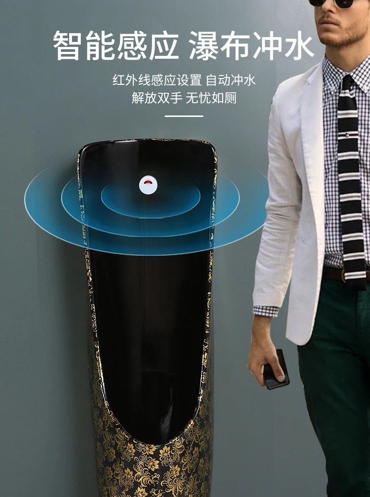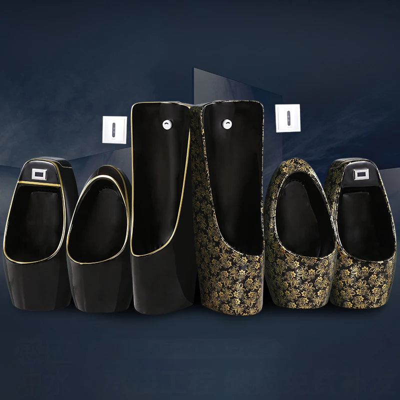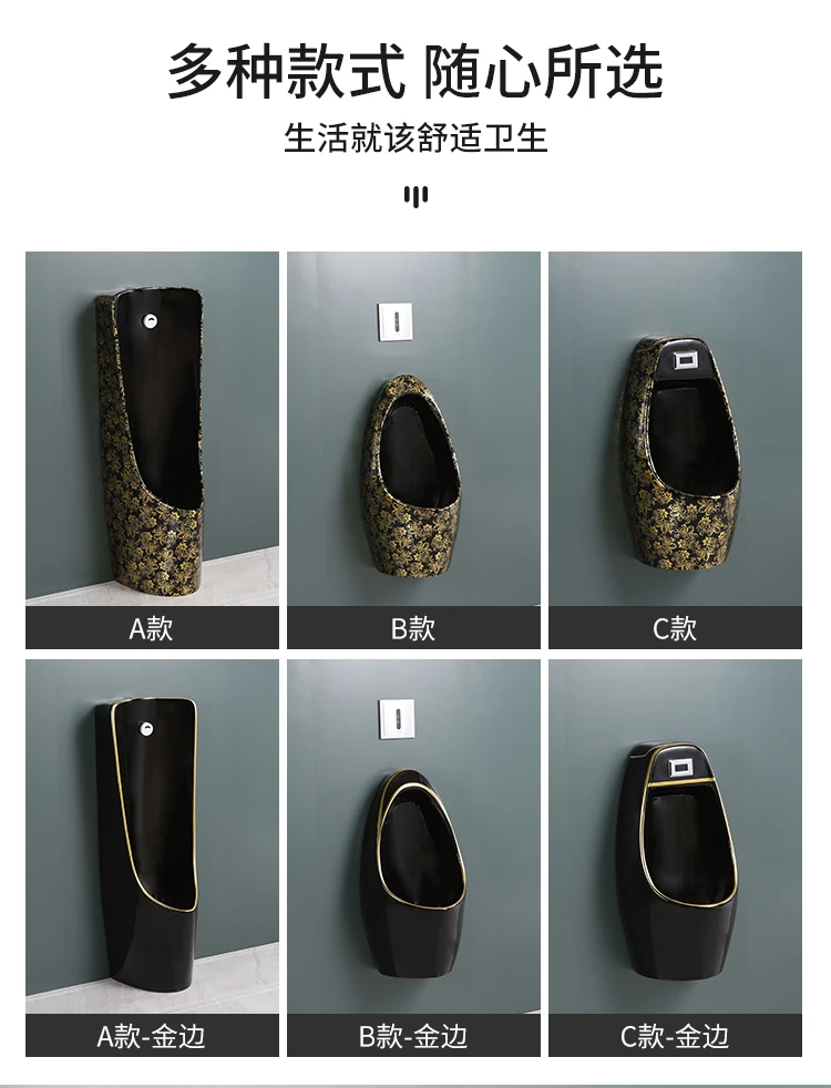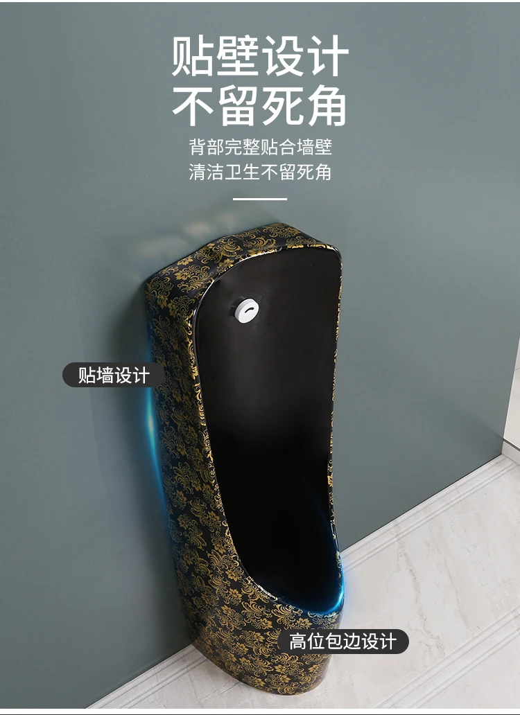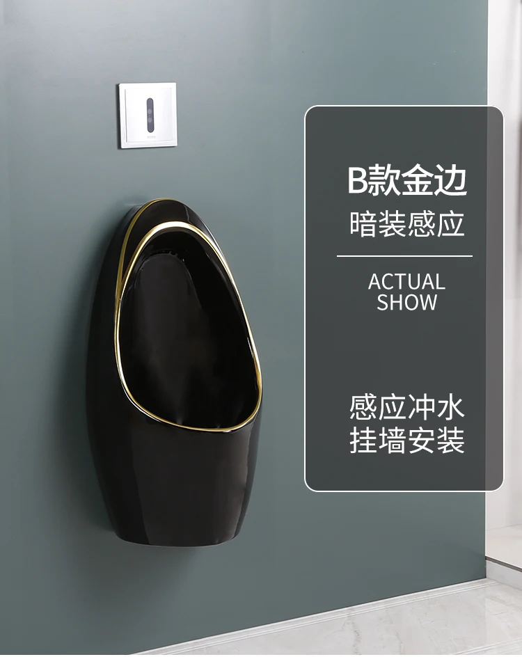 Household black induction urinal wall type floor standing European style surface mounted integrated ceramic urinal bucket