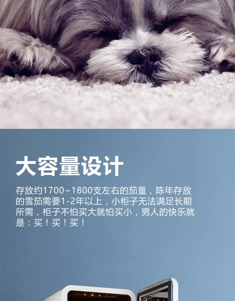 Household intelligent compressor, variable frequency, large capacity, retro smart cigar cabinet, constant temperature and humidi