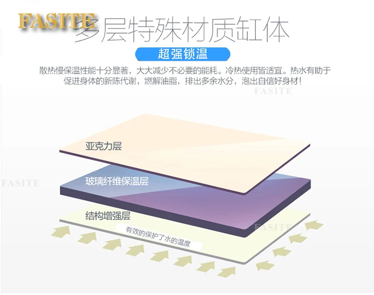 Household single adult padded acrylic bath small-sized water curtain waterfall jacuzzi