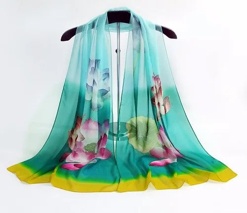 Drying: Do not wring or twist, roll in towel to extract water. Avoid drying silk in direct sunlight. Either hang the silk scarf to dry, it will hold its shape or put the silk scarf between two white towels and let it dry horizontally by itself. Wet silk may yellow in direct sunlight or on a radiator. We do not recommend drying silk in a clothes dryer since it can damage the scarf.