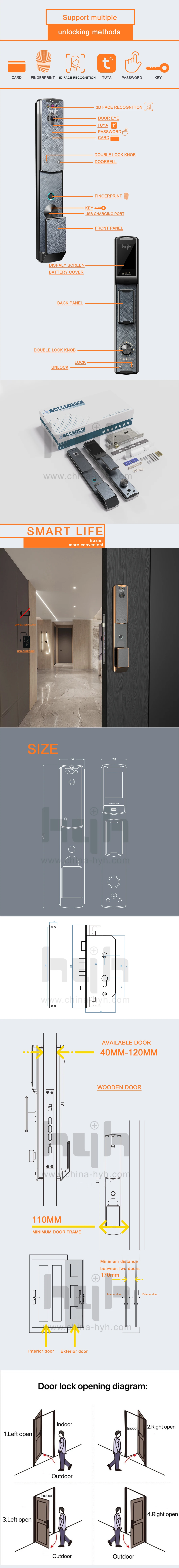 hyh Biometric Fingerprint Lock 3D Face Recognition Camera Intelligent Fingerprint Password RFID Card Automatic Lock for Security