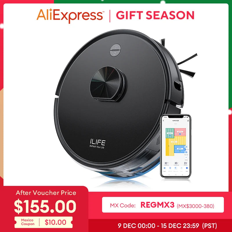 ILIFE A20 Robot Vacuum and Mop Combo, LiDAR Navigation, 3000Pa Suction, Smart Mapping, App/Alexa Control, Ideal for Pet Hair