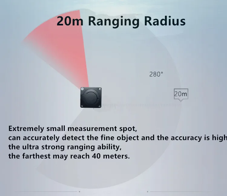 Light source:Laser diode 905nm, ≤1mW; Meets GB7247.1-2001; Class I laser human eye safety requirements