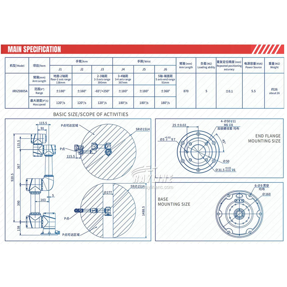 Industrial machinery Six-axis Robot Arm is a kind of automatic mechanical equipment widely used in various industrial fields. Its main functions include but are not limited. The Industrial machinery Six-axis Robot Arm is ideal for handling, welding and processing, packaging, sorting, testing, medical surgery, scientific research, etc