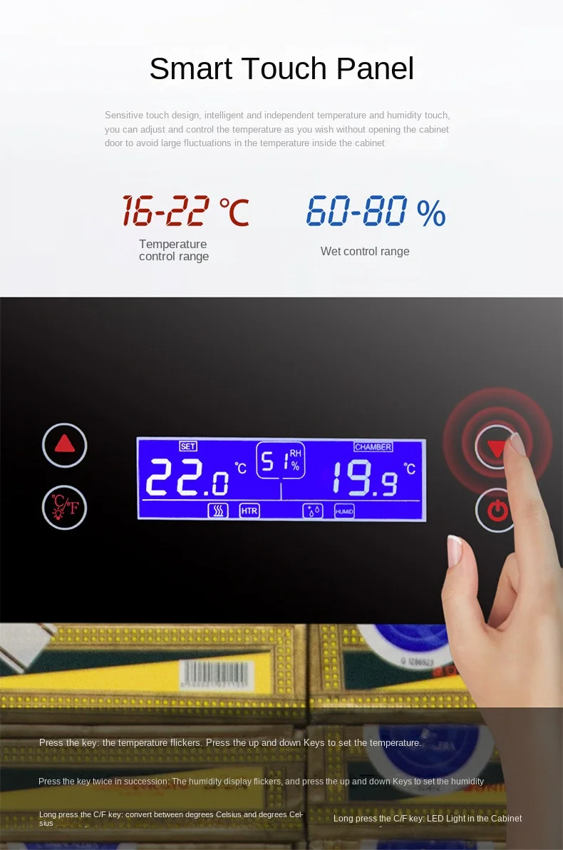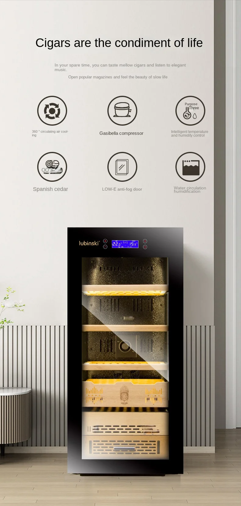 Intelligent Cigar Humidor Inverter Constant Temperature Humidity Cedar Wood Cigar Humidor Large Capacity Cigar Tea Box Cabinet