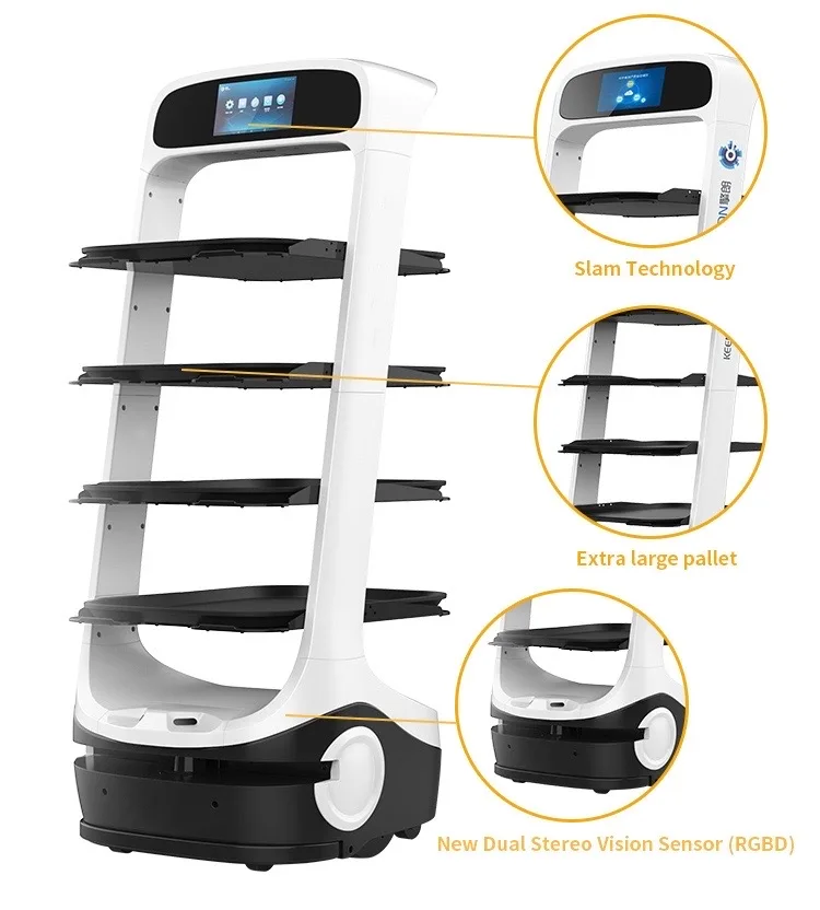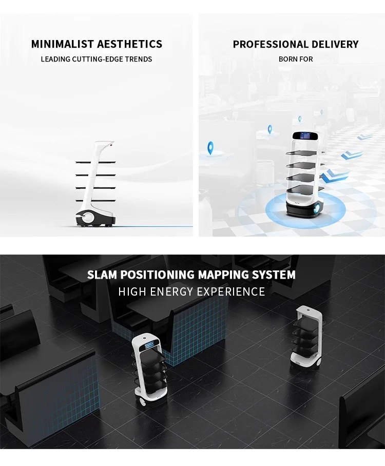 Intelligent Helper Multi-layer Super Bearing Capacity Practical T6 Food Delivery Smart Famous Restaurant Robot Free Spare Parts