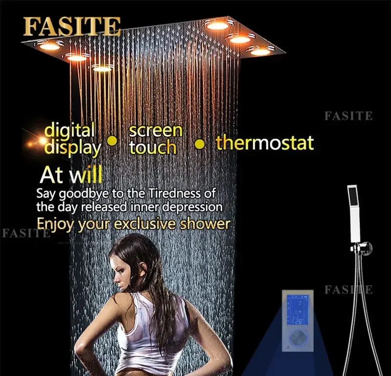 Intelligent Smart Constant Temperature Digital Valve Panel Mixer Rainfall Shower Head Set Colorful Faucet System