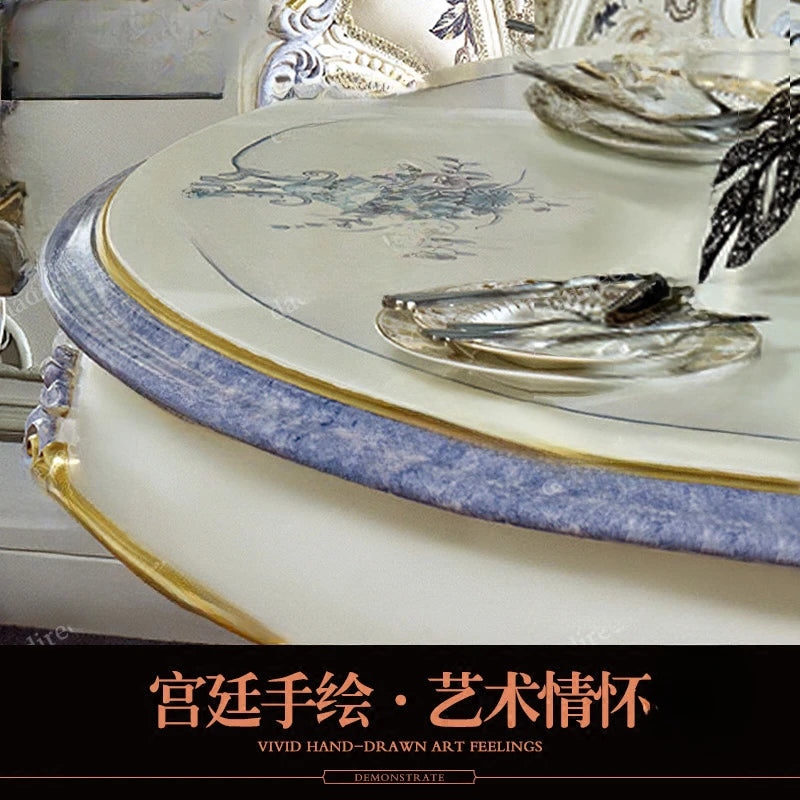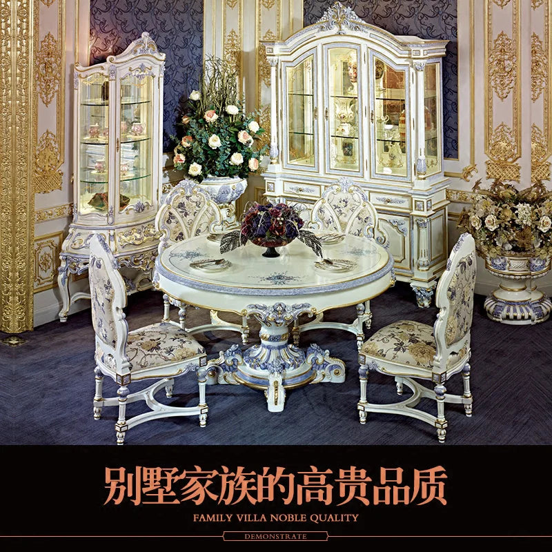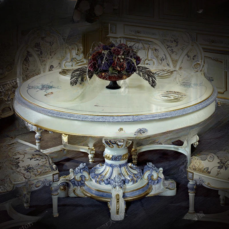 Italian European Luxury Dining Table and Chair Combination Palace Round Dining Table Large Carved Dining Table Customization