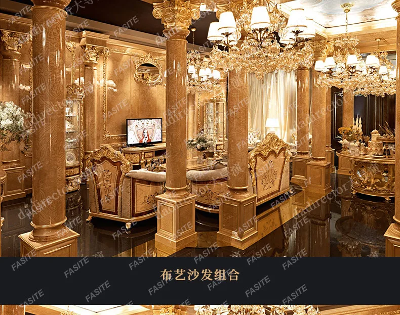 Italian European style fabric sofa combination French style palace large unit luxury solid wood sofa villa living room furniture