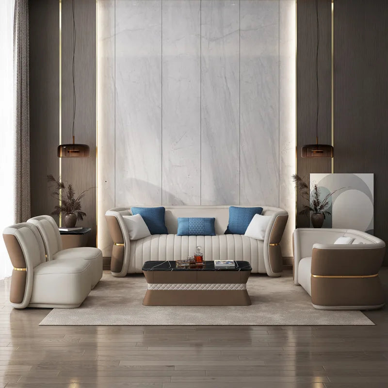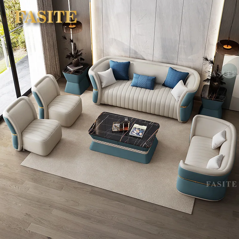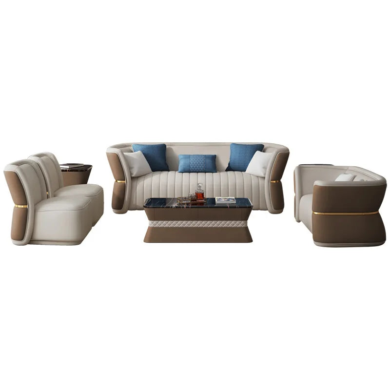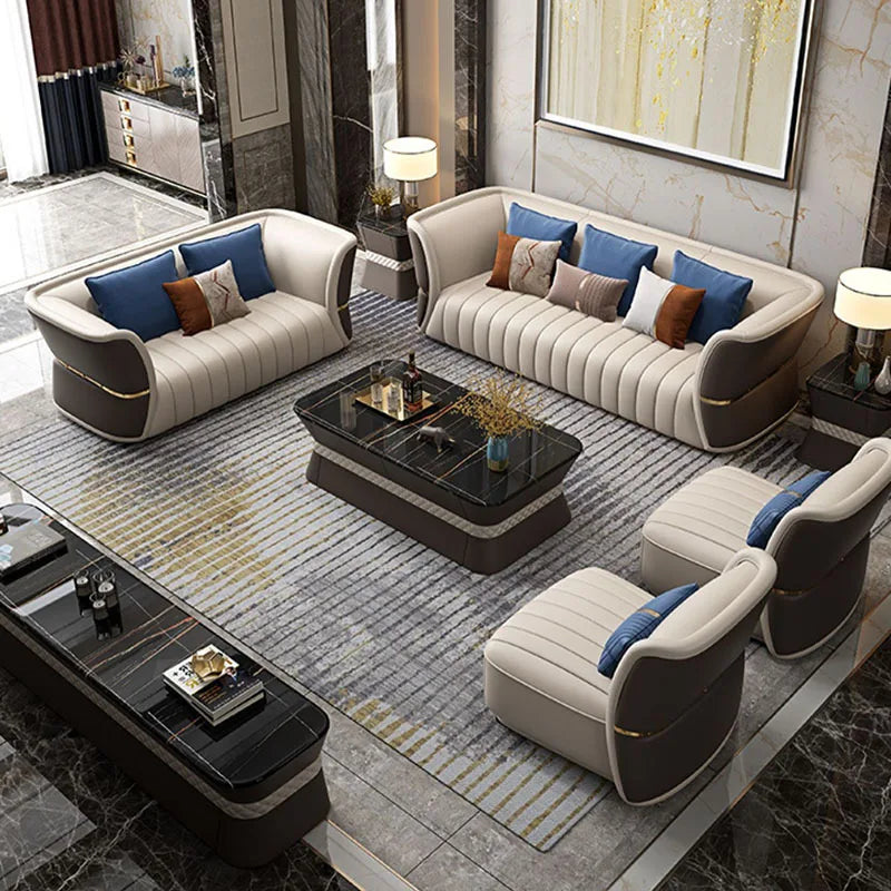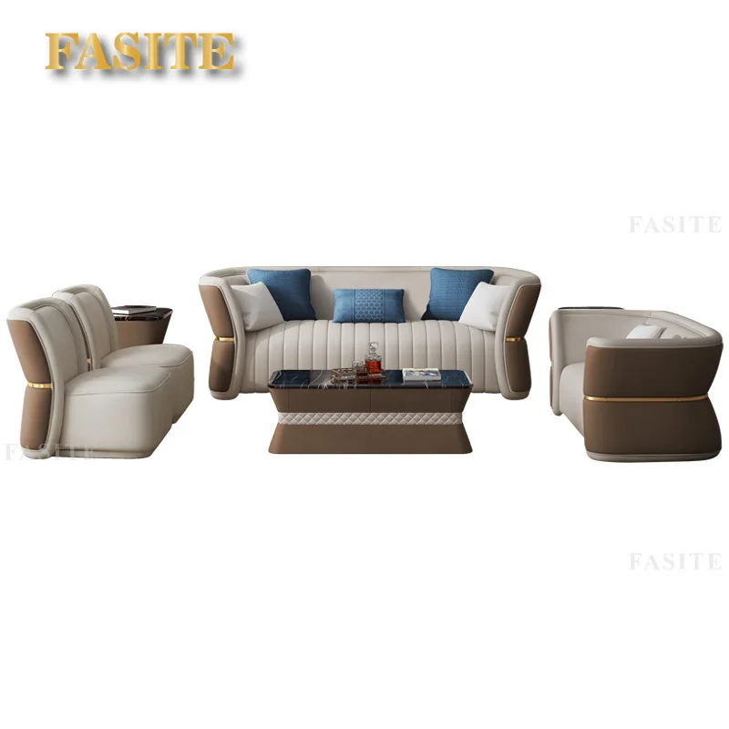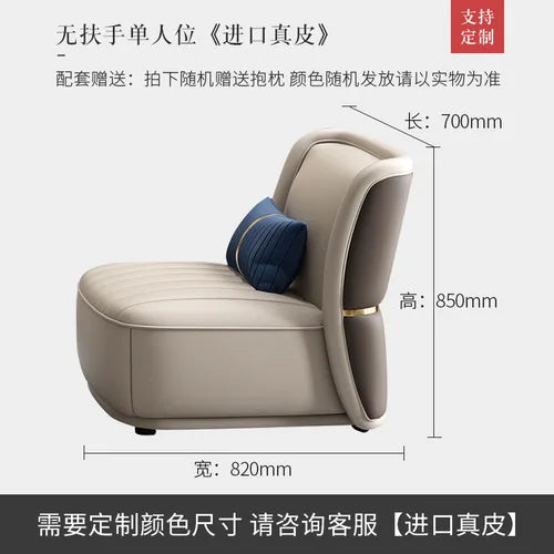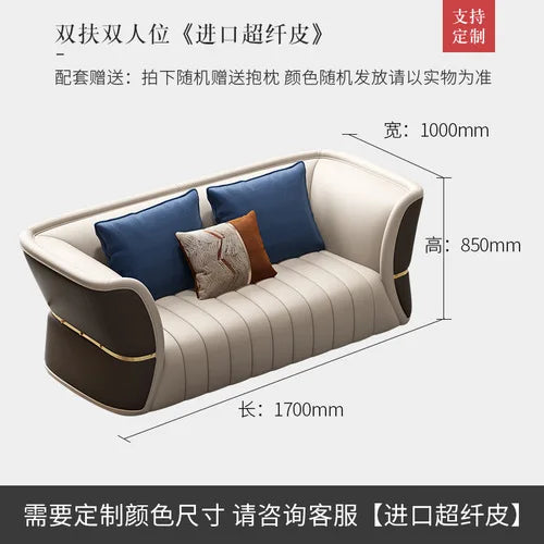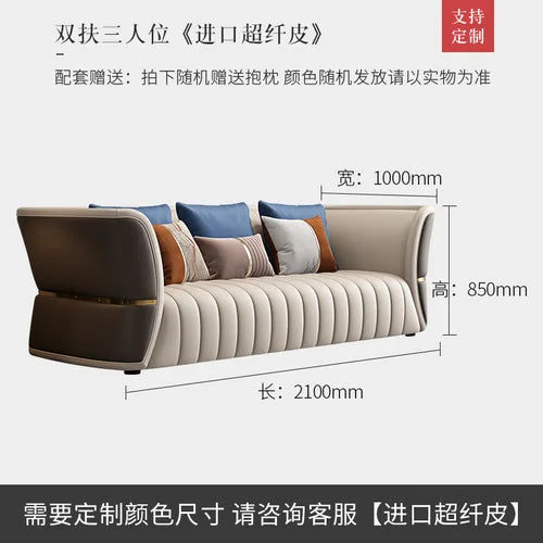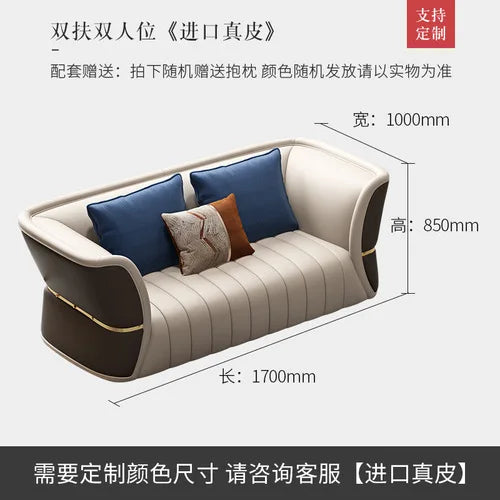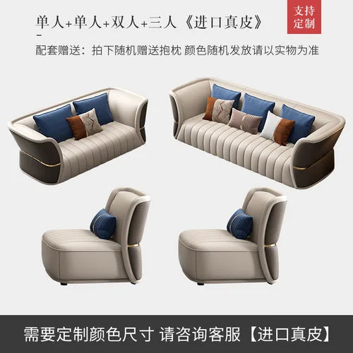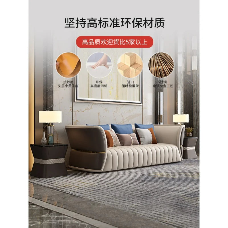 Italian light luxury leather sofa, Bentley style furniture, high-end villa, whole house custom large living room leather sofa