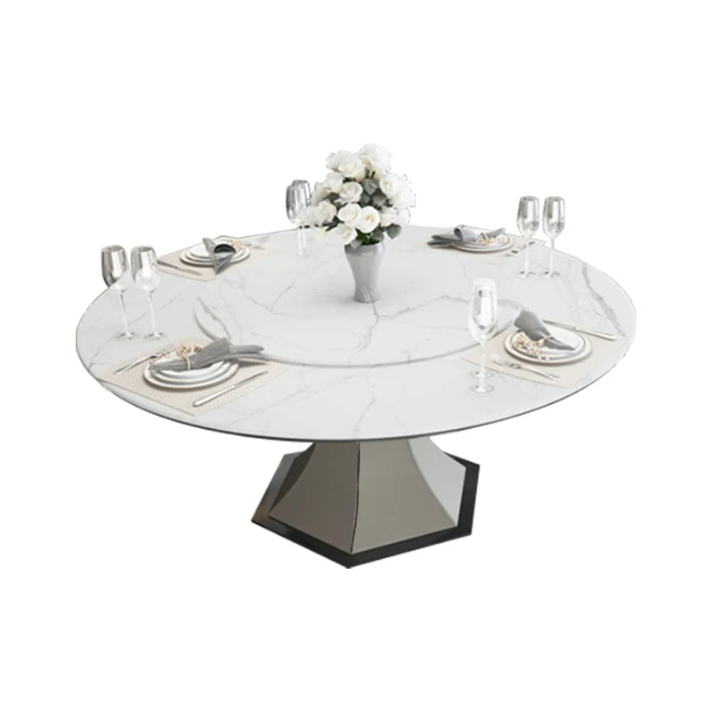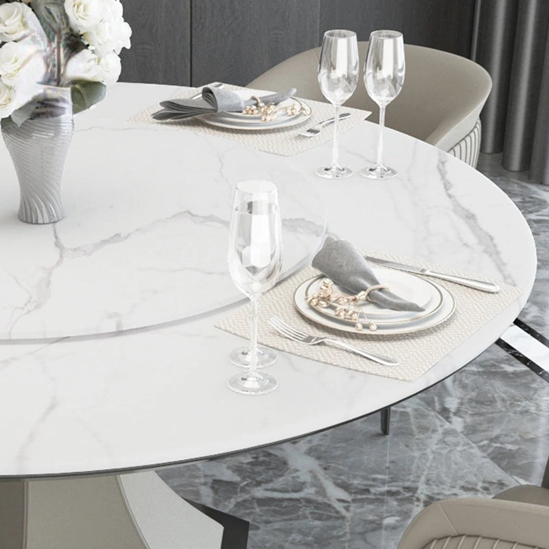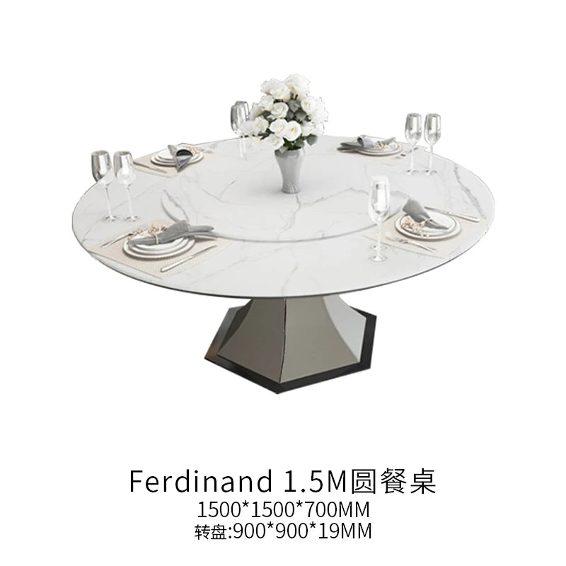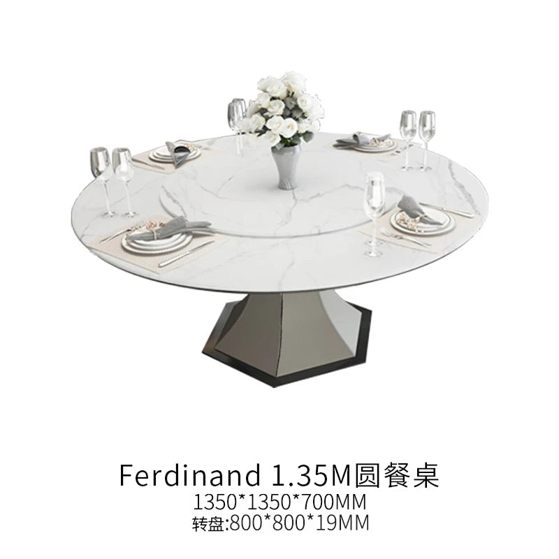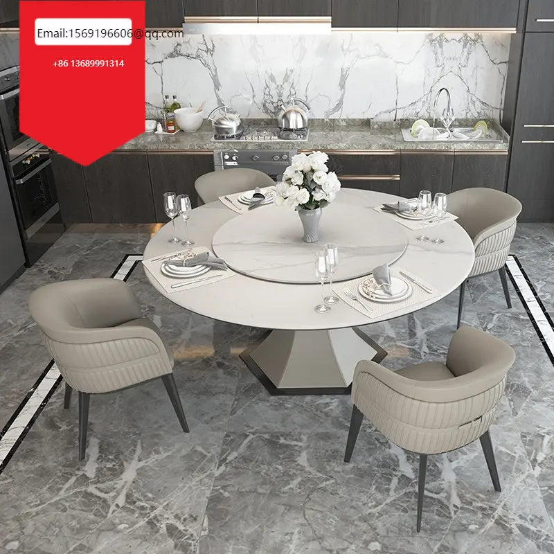 Italian light luxury rockboard round table with turntable modern simple solid wood dining table and chair combination furniture