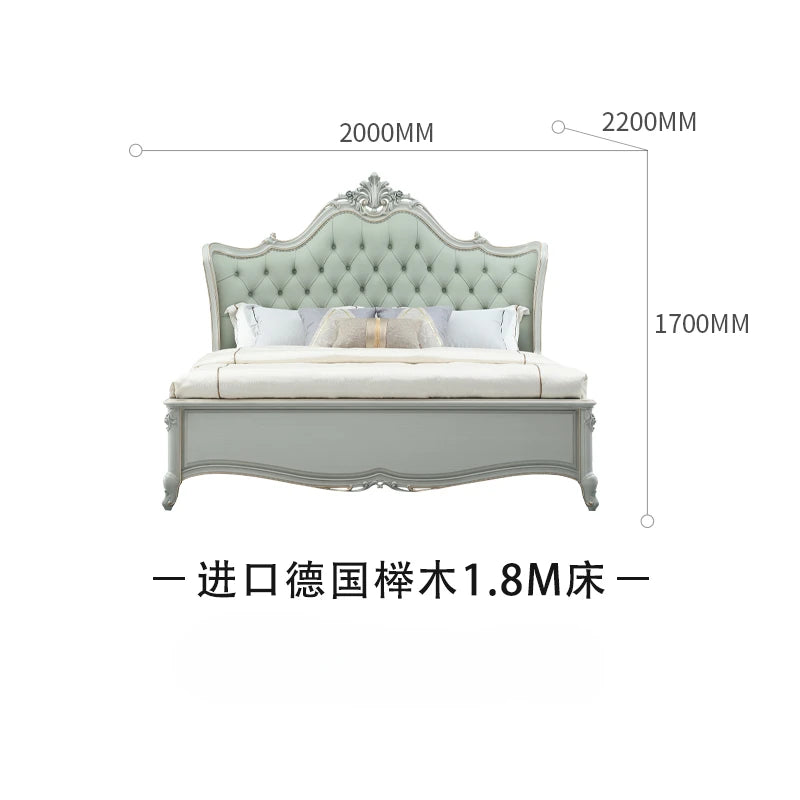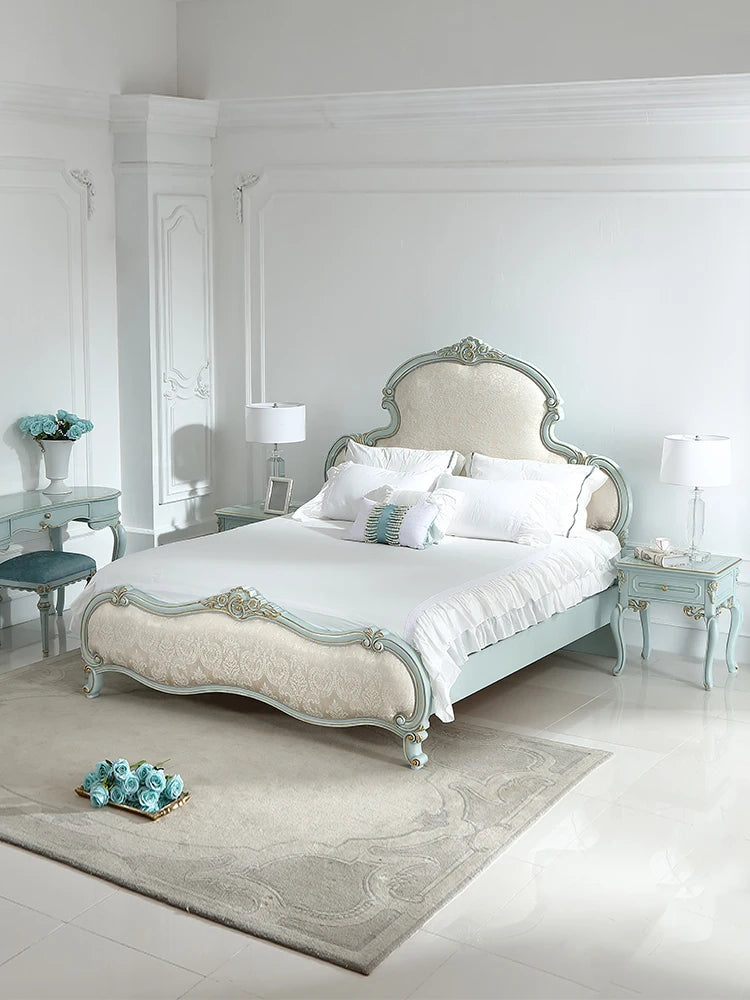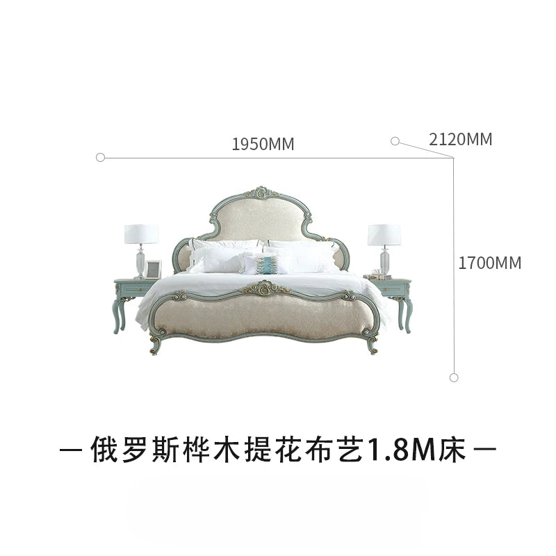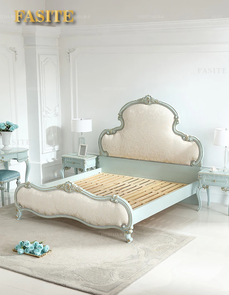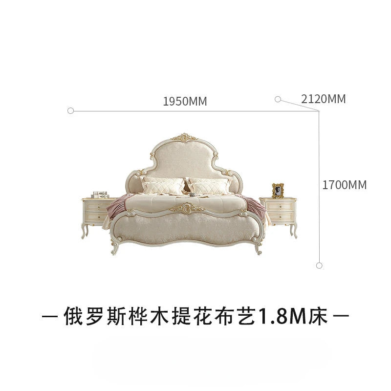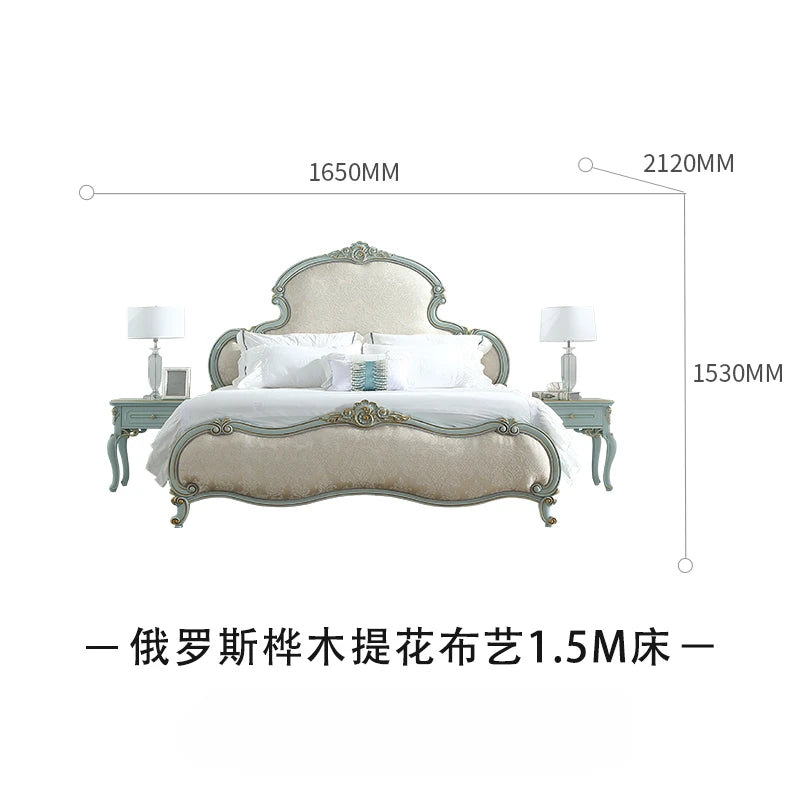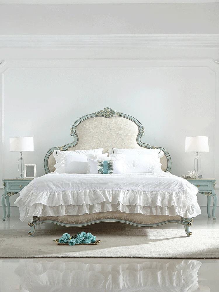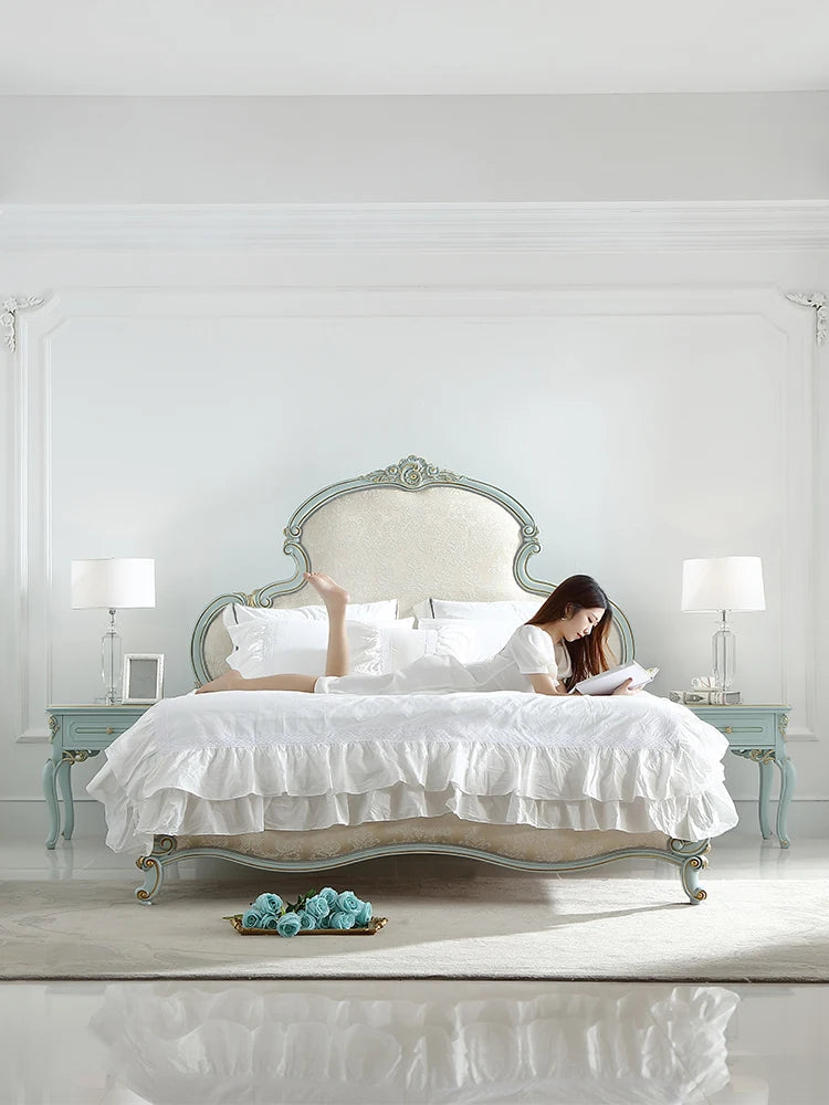 Jane Ou light luxury master bedroom fresh and romantic 1.8m solid wood fabric princess bed