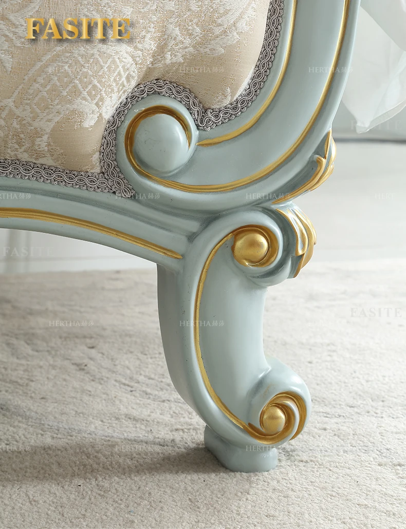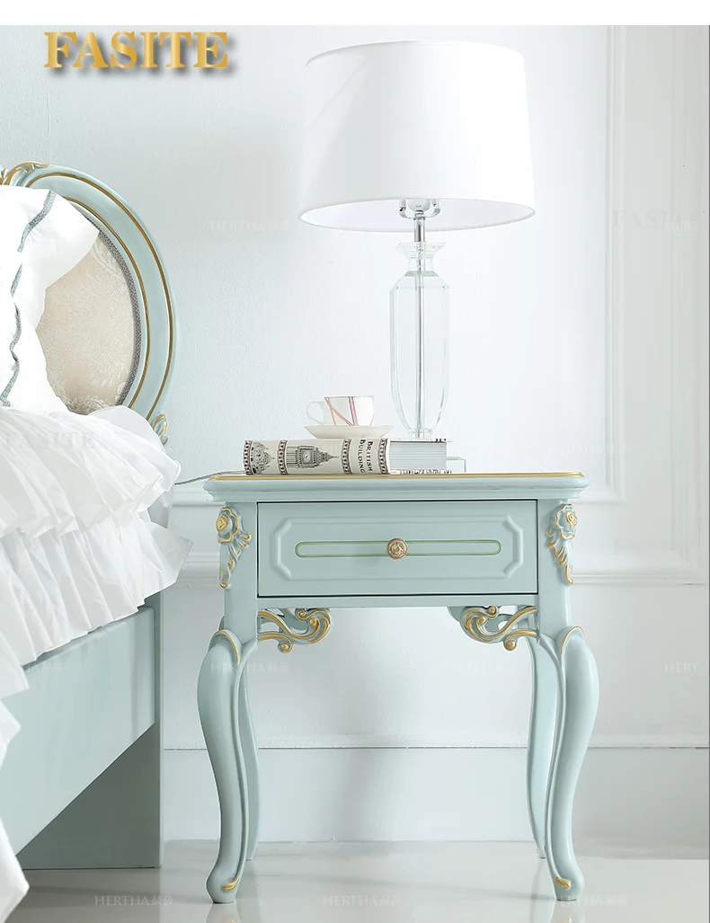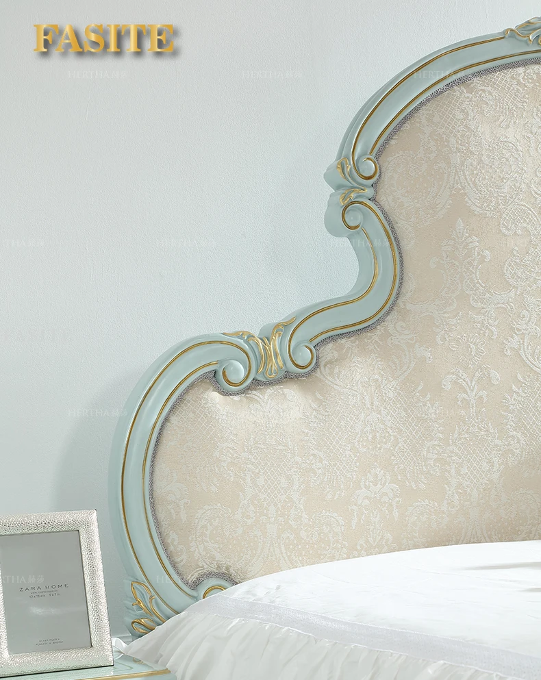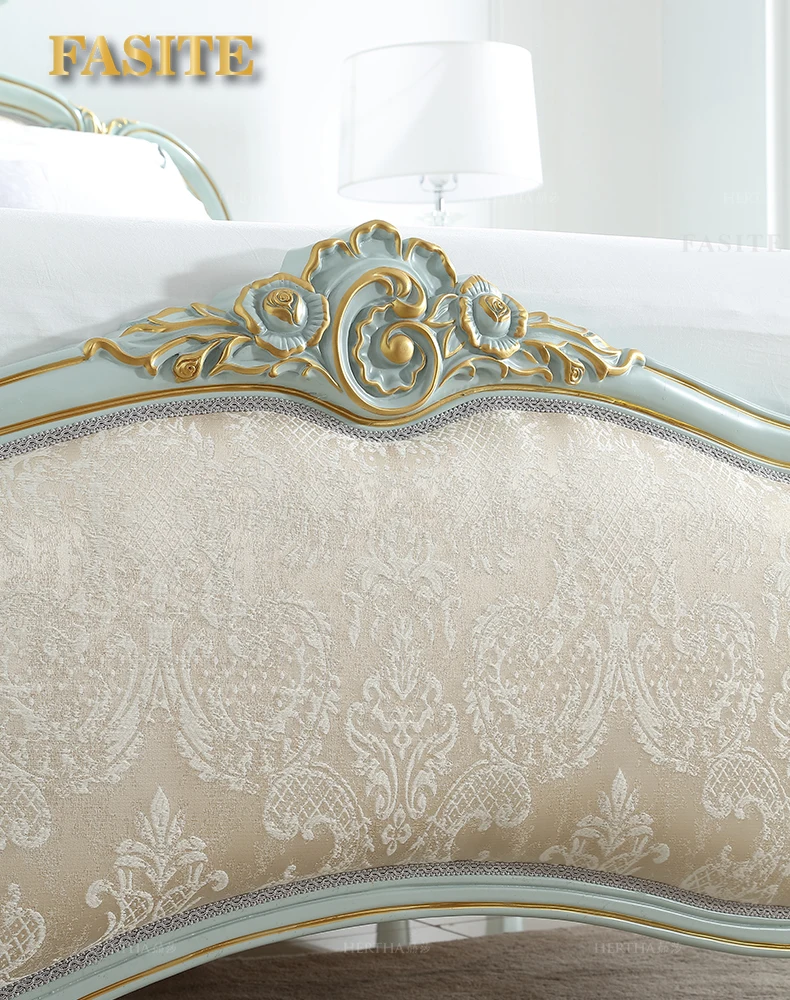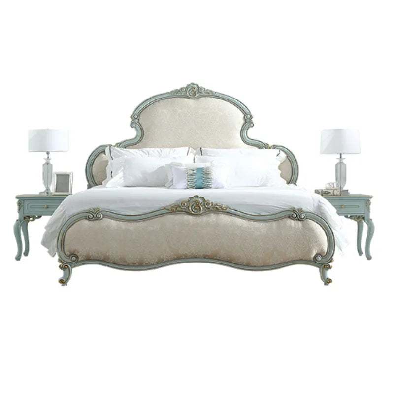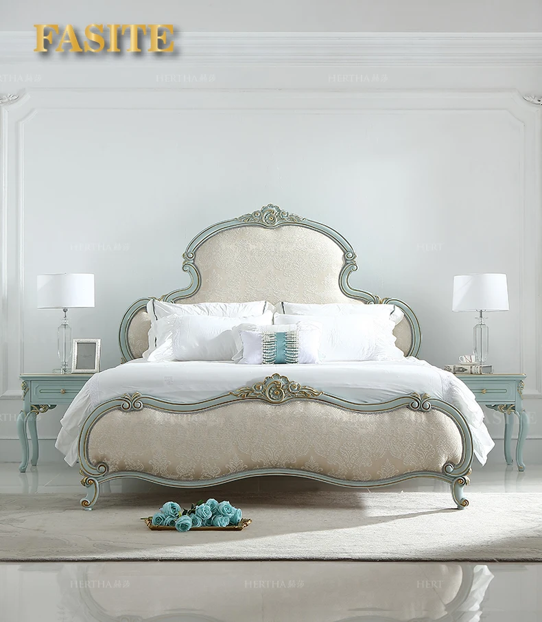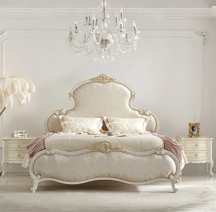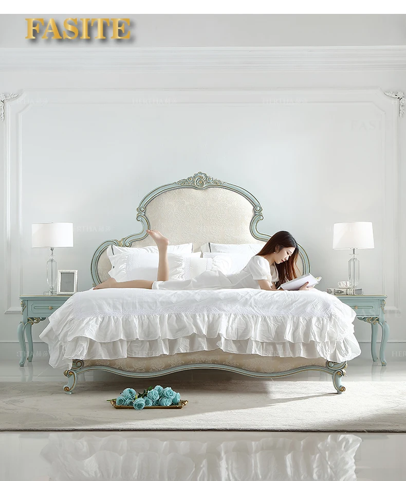 Jane Ou light luxury master bedroom fresh and romantic 1.8m solid wood fabric princess bed