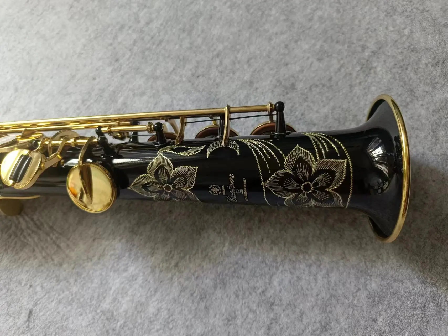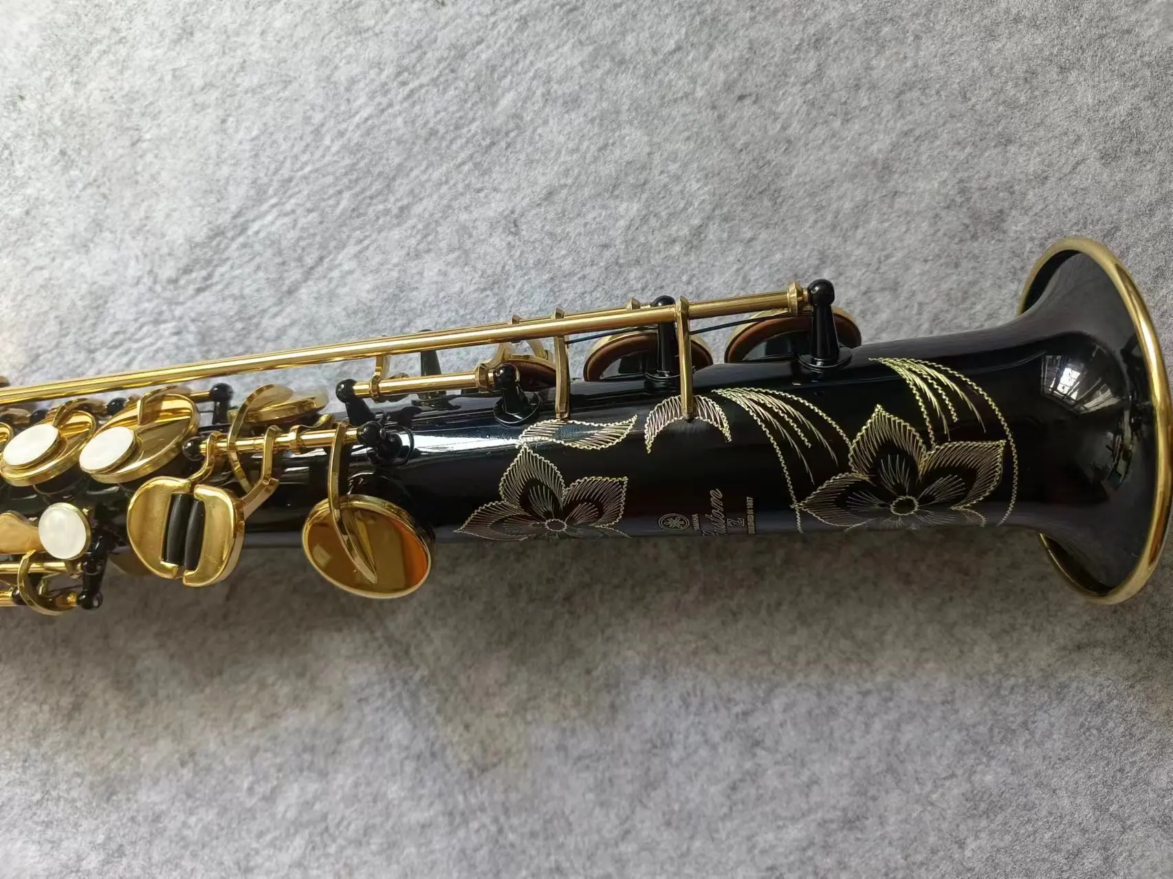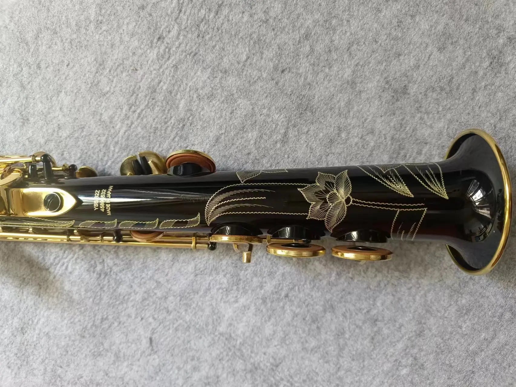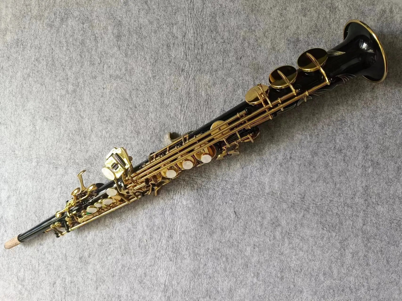 Japan 82Z Brass Straight Soprano Bb Flat Sax Saxophone Woodwind Instrument Natural Shell Key Carve Pattern with Carryi